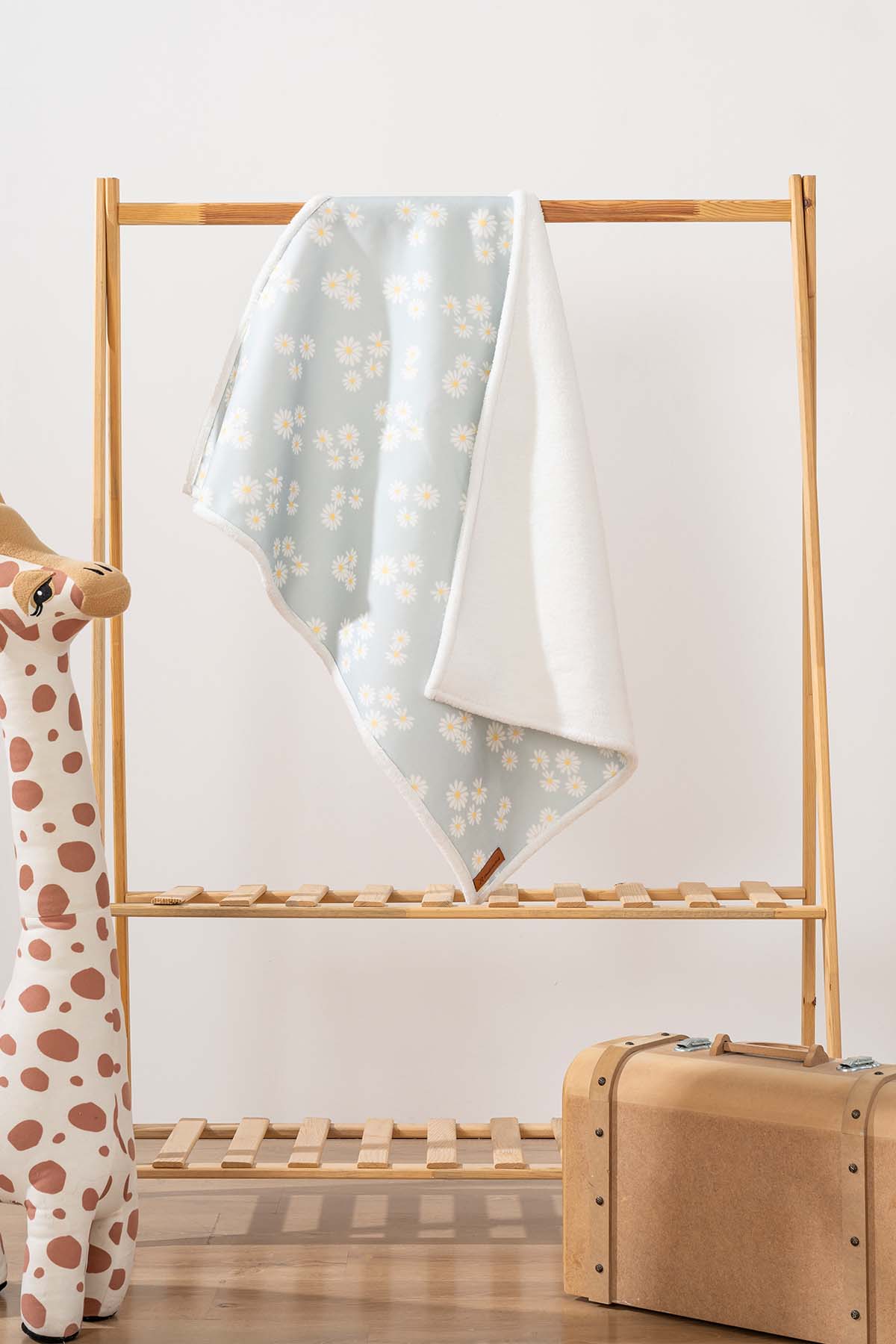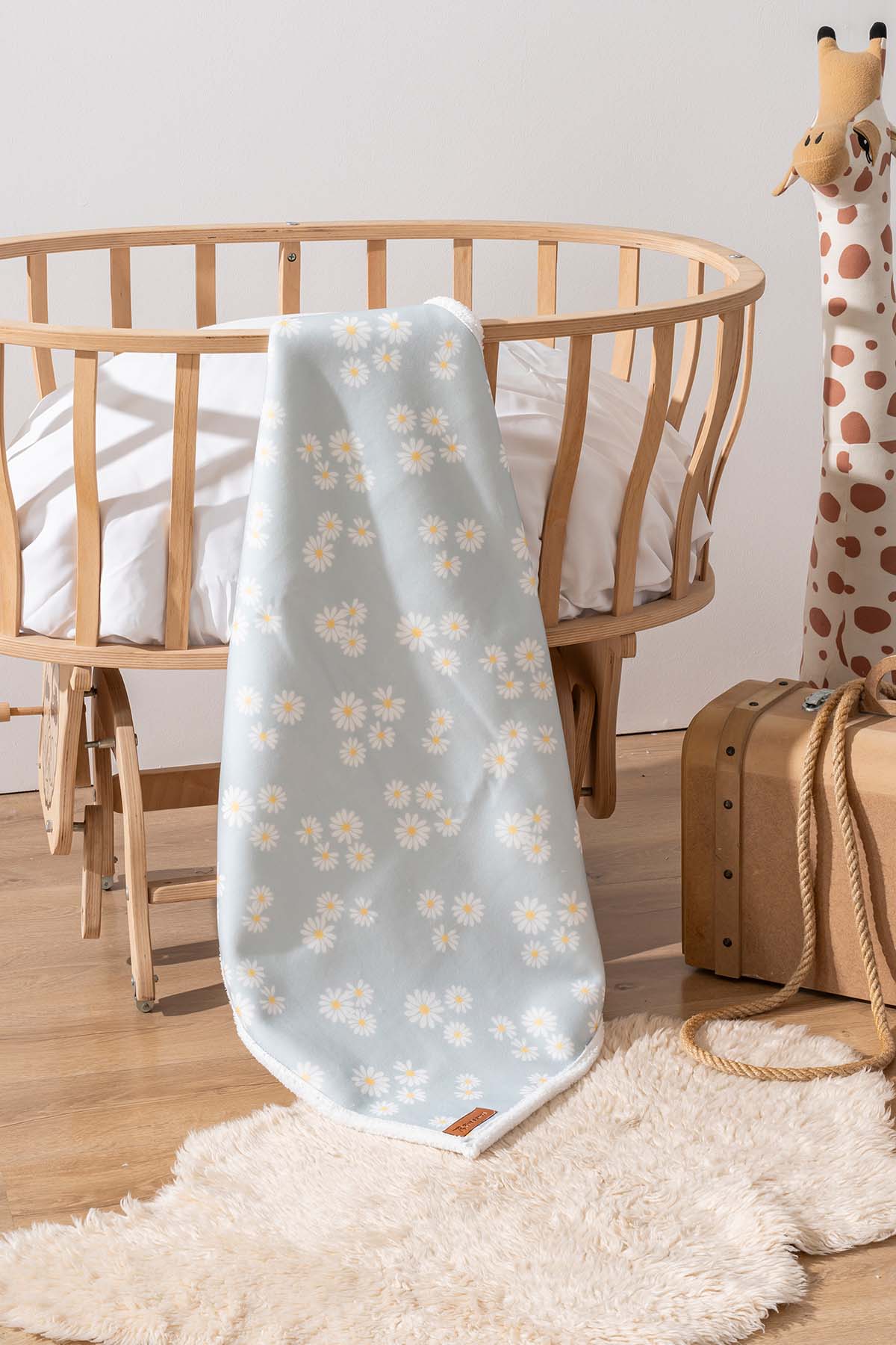 • Fluffy Bebek Battaniyesi 70x100 Cm Yeşil Papatya Desen