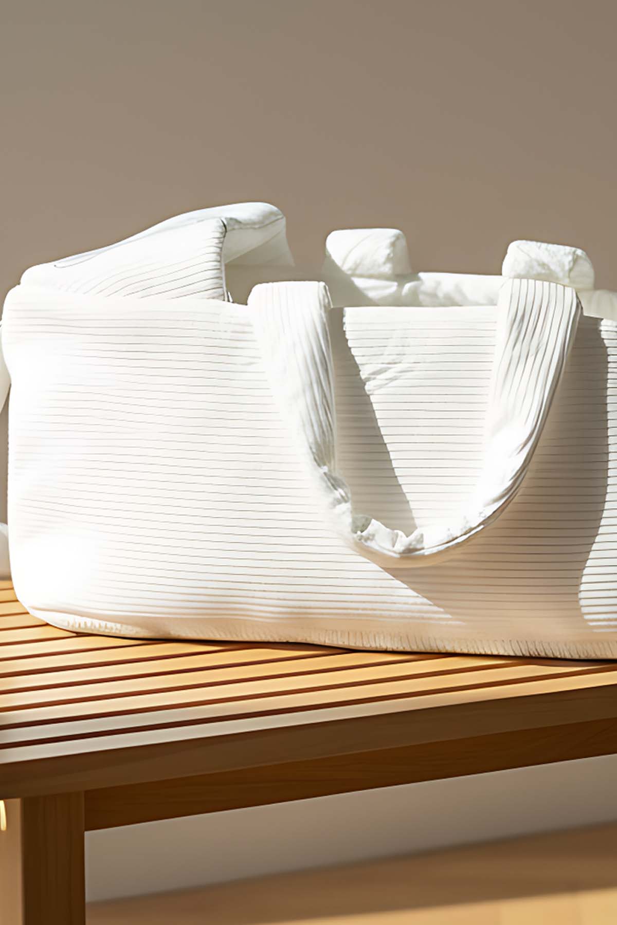 Pamuklu dış dokusu ile öne çıkan Bebek Taşıma Çantası, bebeğinizin konforunu ve güvenliğini bir arada sunar.