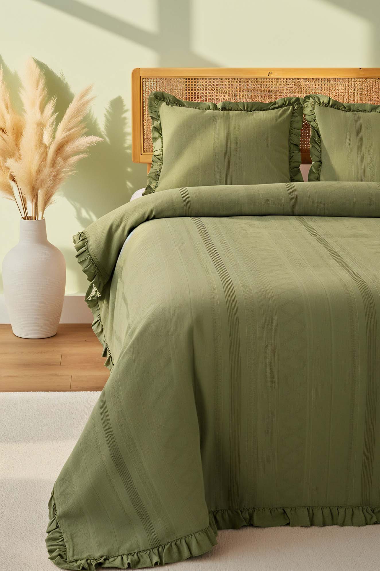 - Tziana Haki Çift Kişilik Jakarlı Yatak Örtüsü Takımı Uyku Seti 3 parçadan oluşmaktadır.