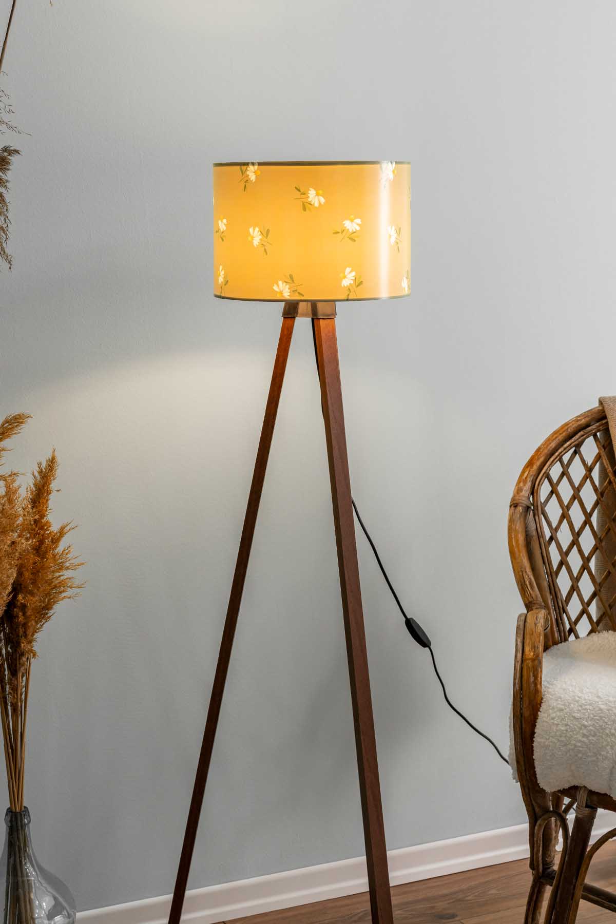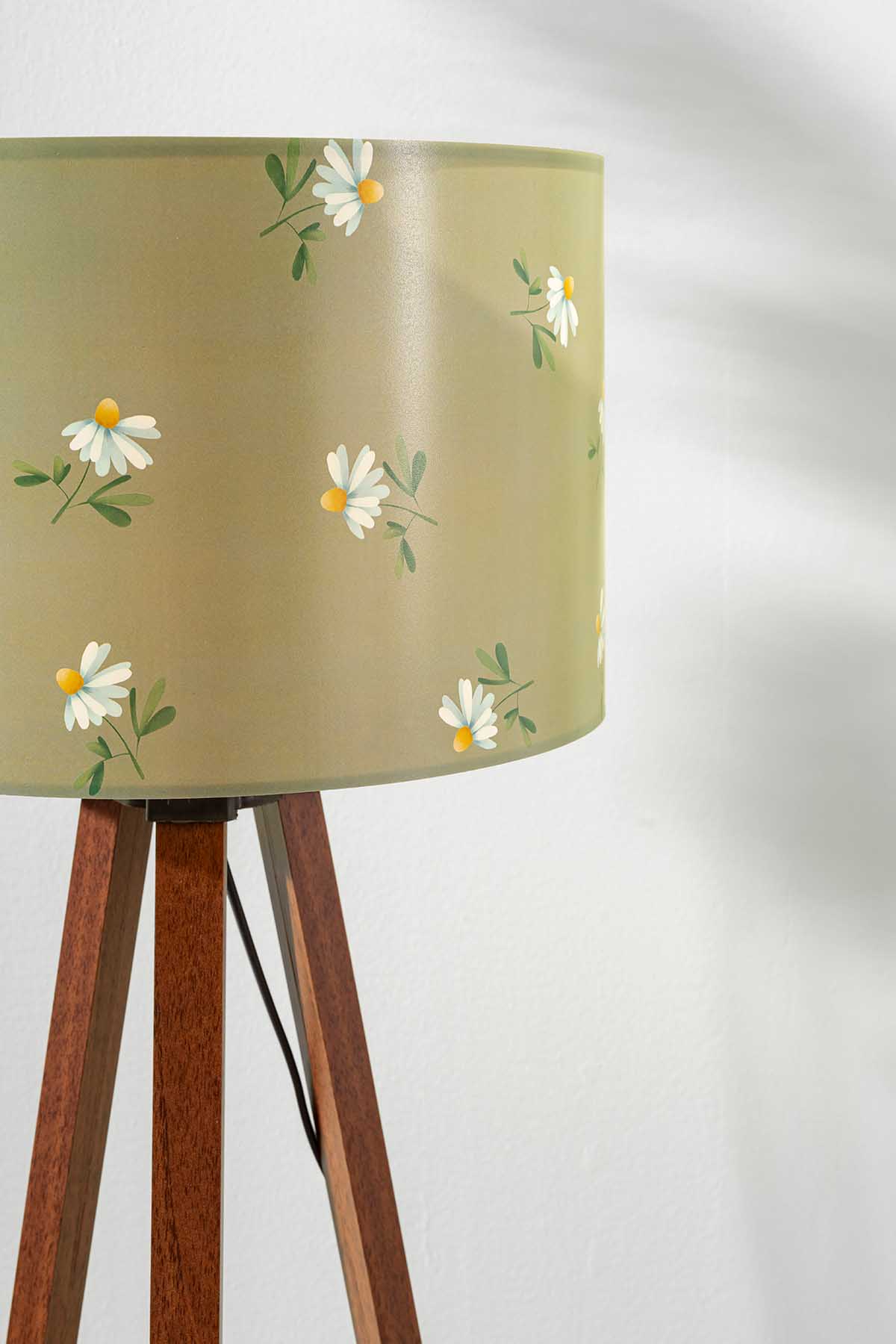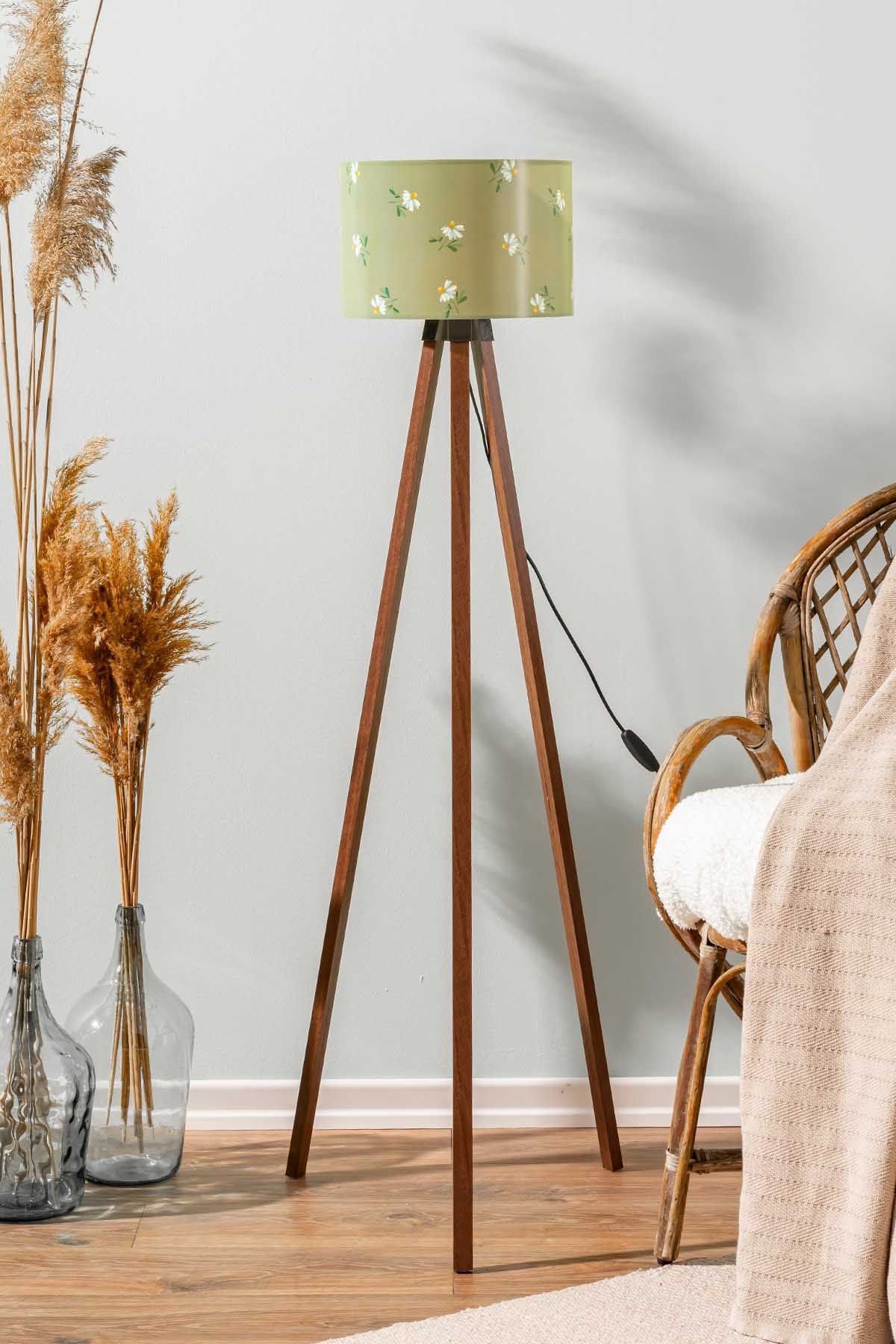 • Yeşil Papatya Silindir Başlık Ahşap Üç Ayaklı Lambader