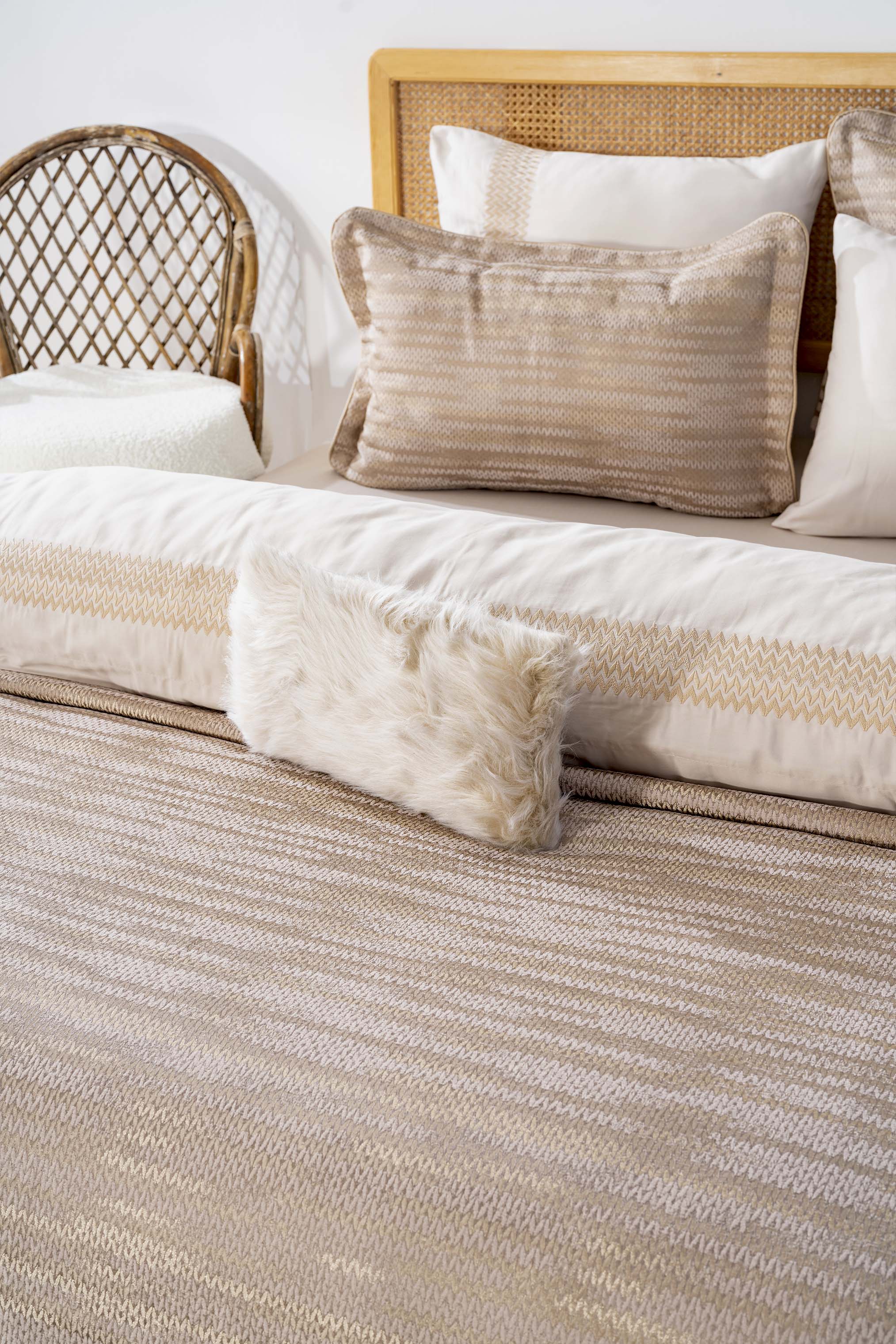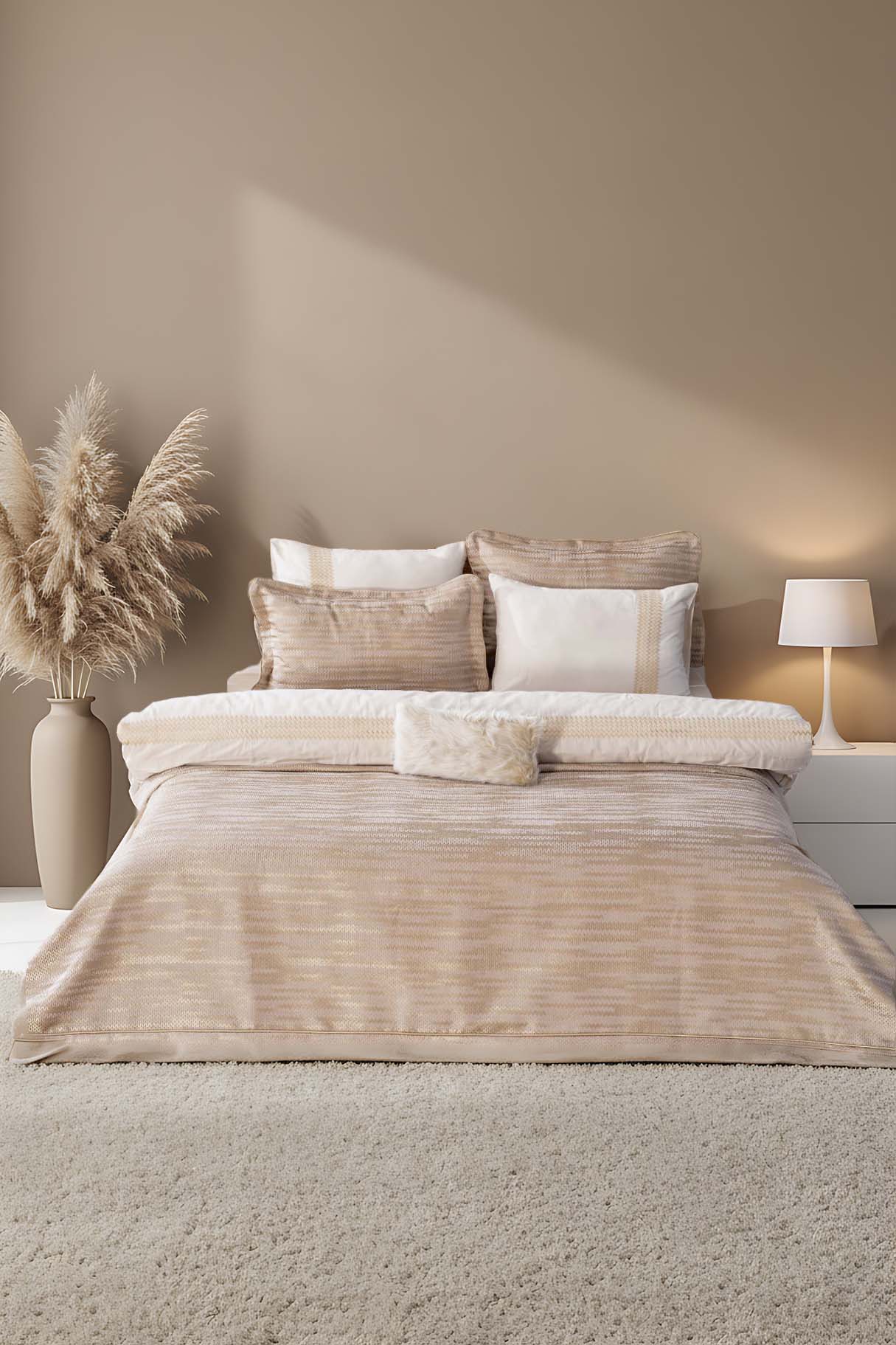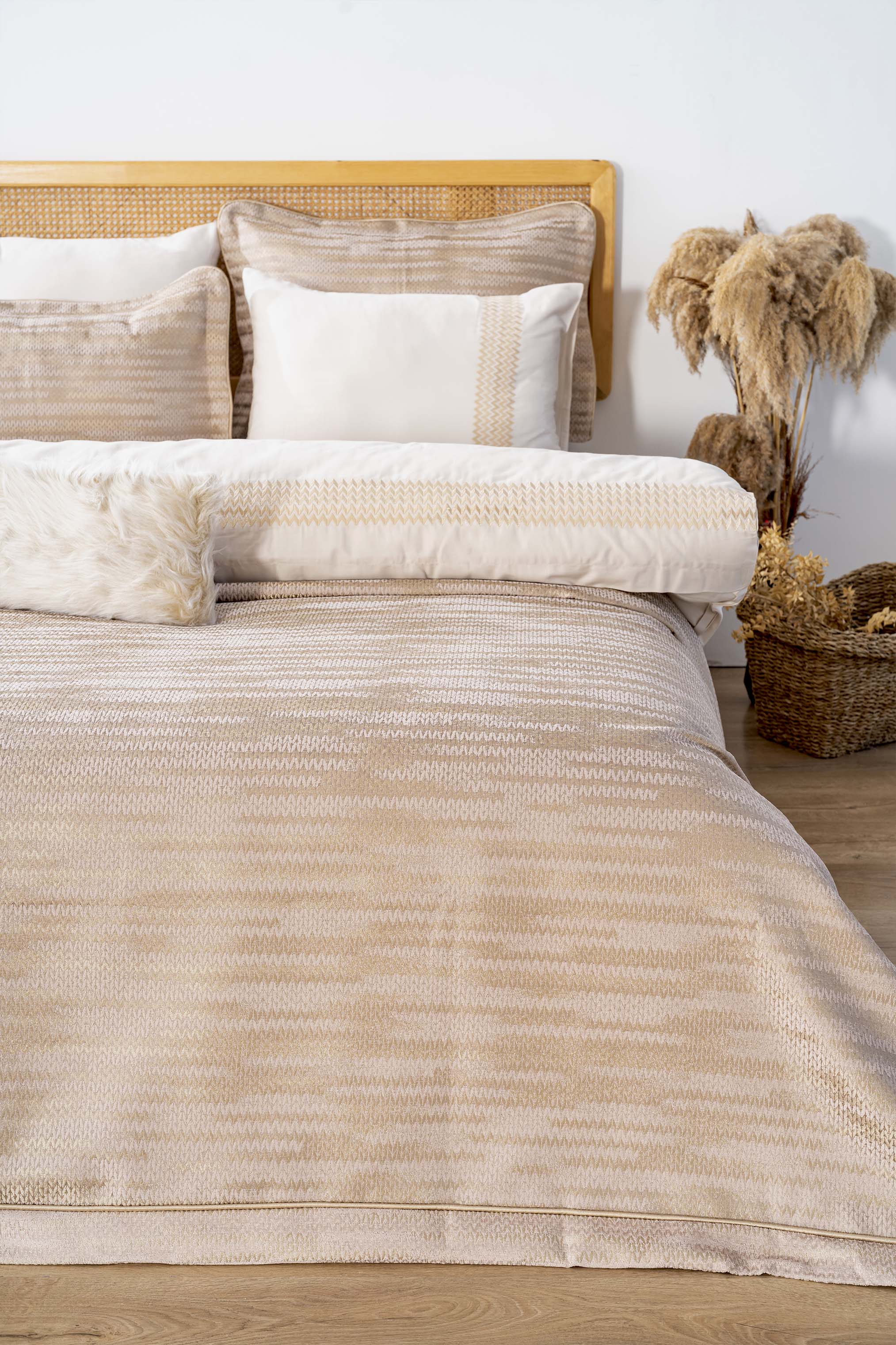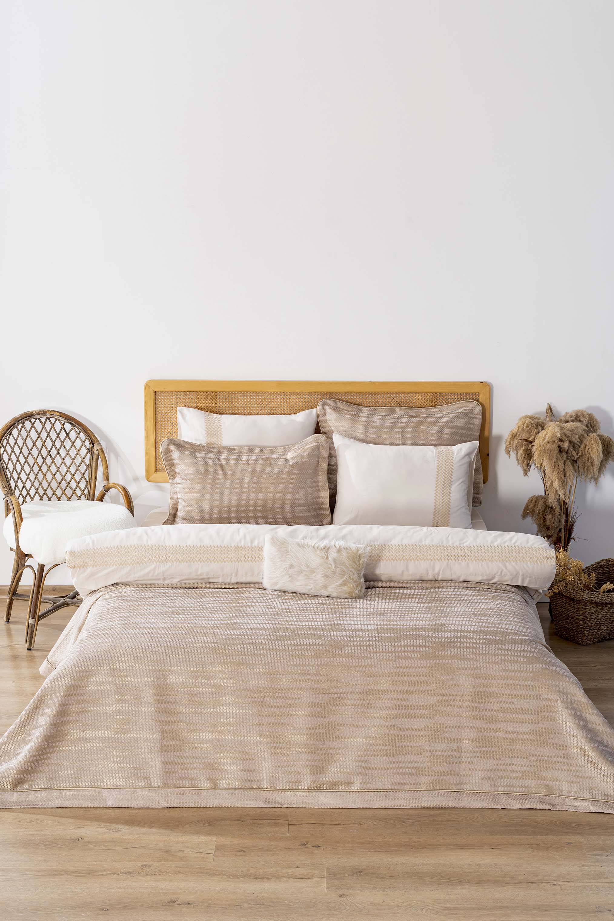 Alina Cappuccino Nakışlı Çift Kişilik Yatak Örtüsü Seti - 4 Parça Çeyiz Seti