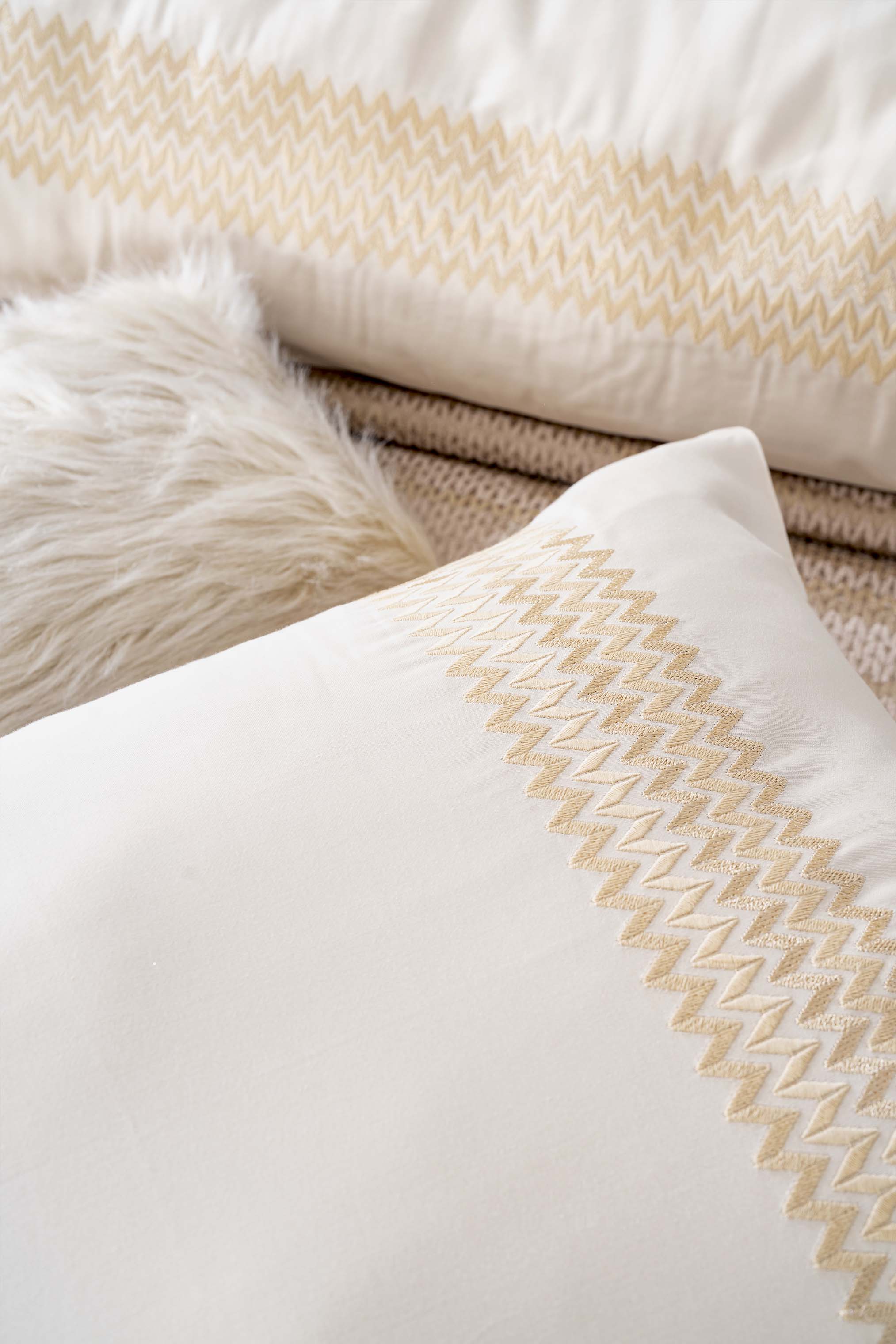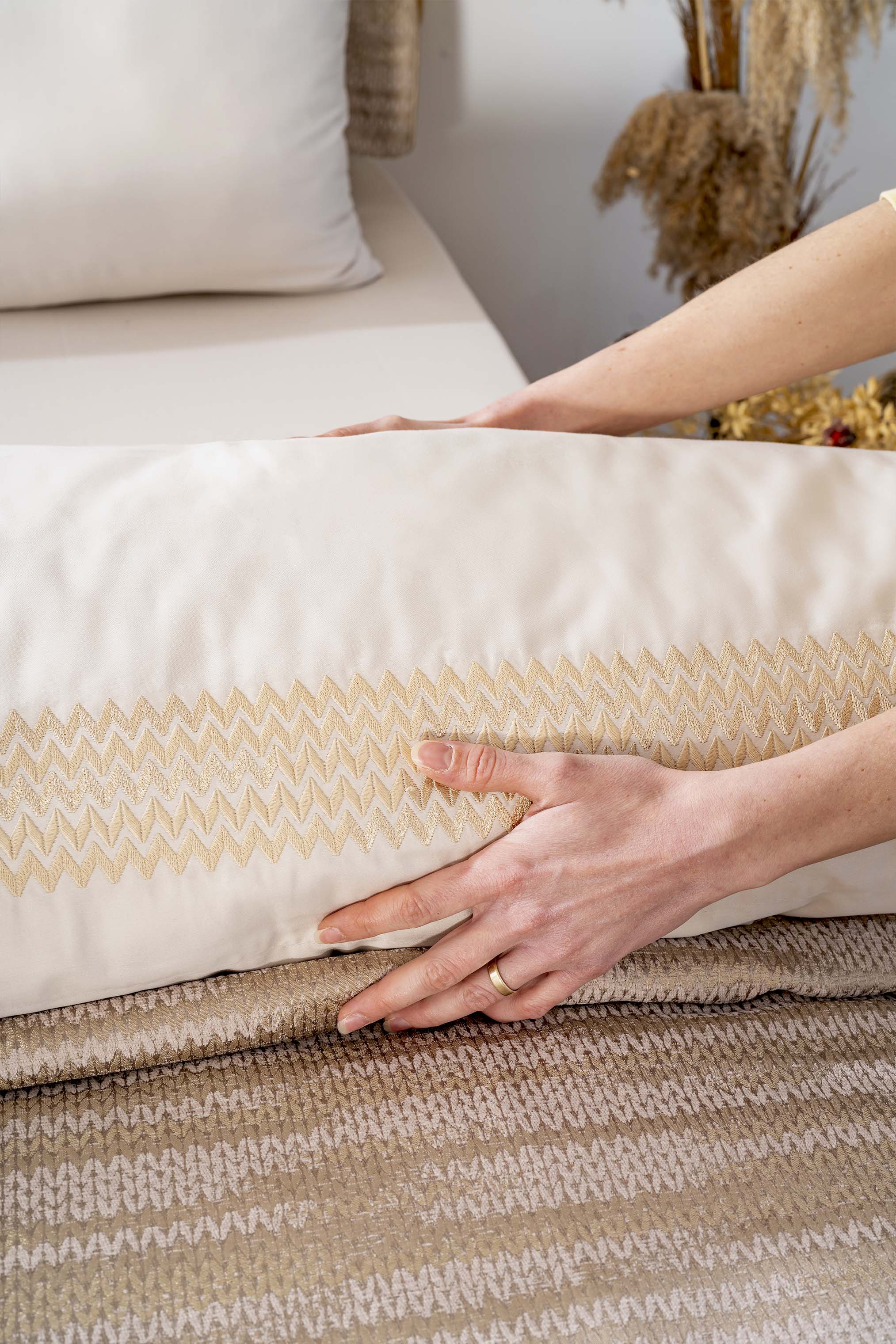 Sade ve şık görünümüyle her yatak odasına uyum sağlayan nakış desenleri, dekorasyonunuzla kolayca kombinlenebilir.