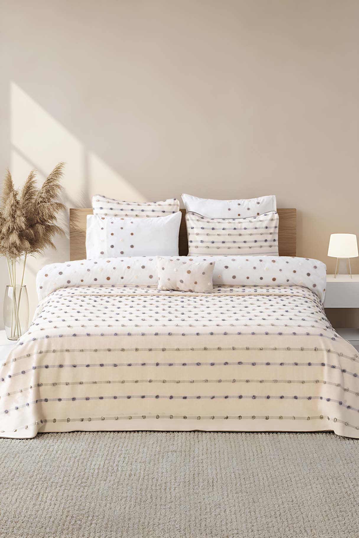 Sade ve şık görünümüyle her yatak odasına uyum sağlayan punch detayları, dekorasyonunuzla kolayca kombinlenebilir.