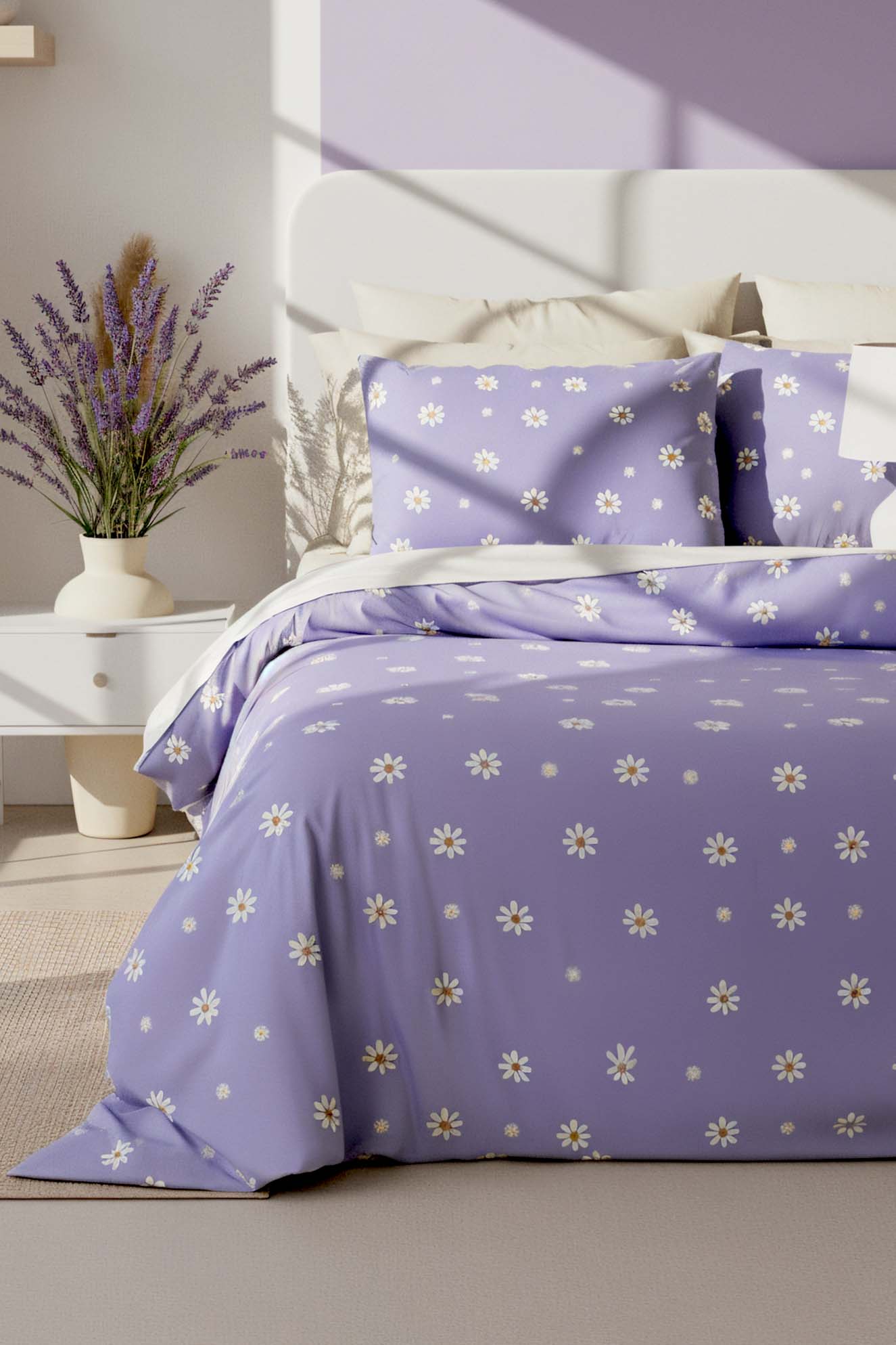 • Mor Papatya Çift Kişilik Nevresim Takımı Pamuklu