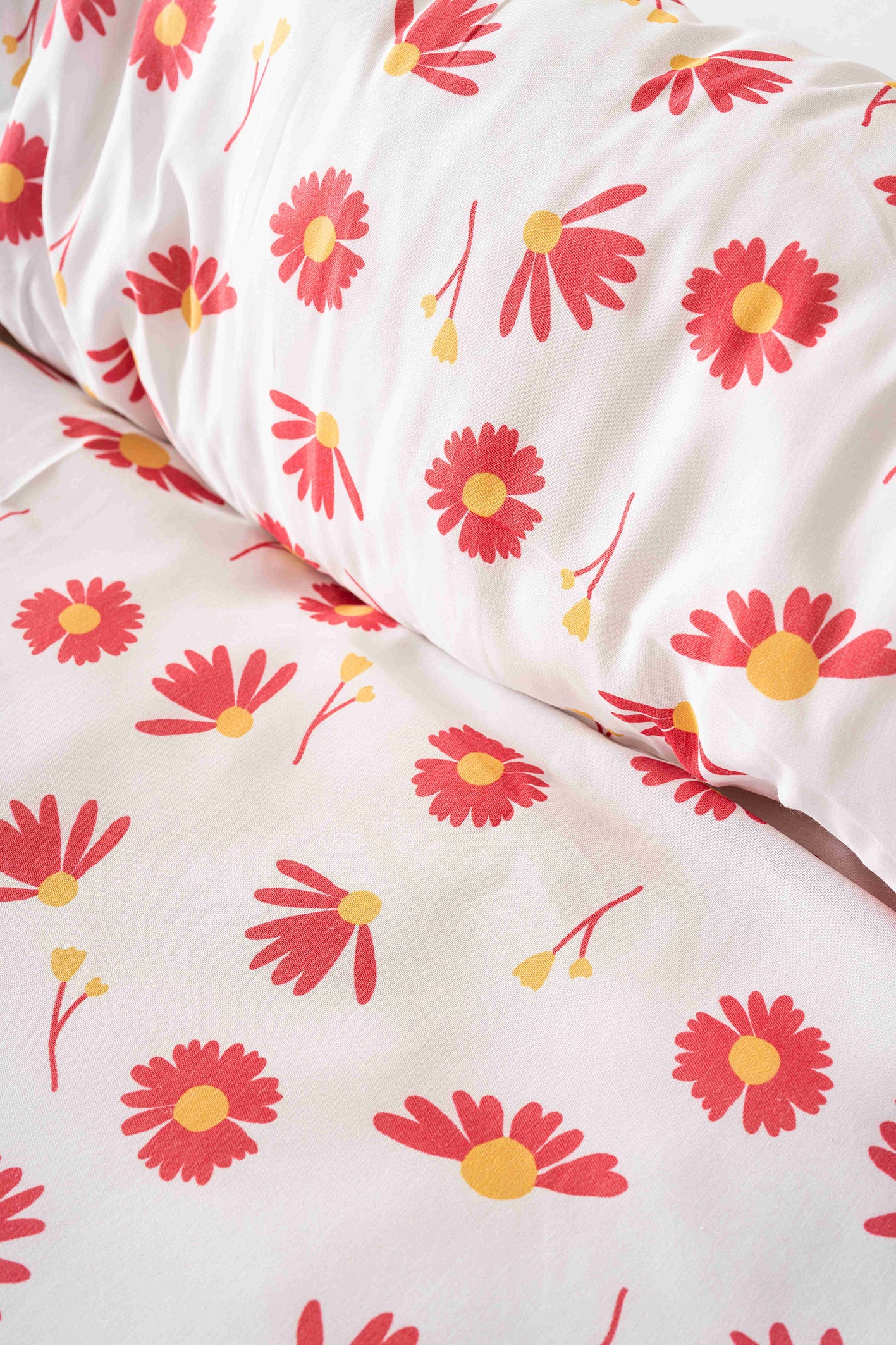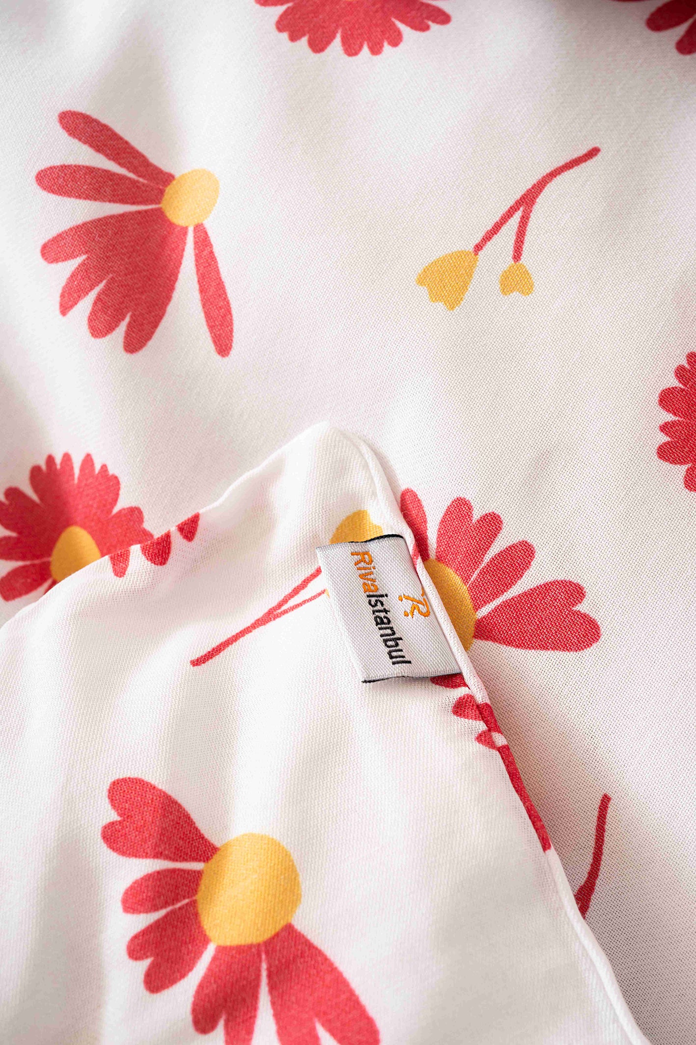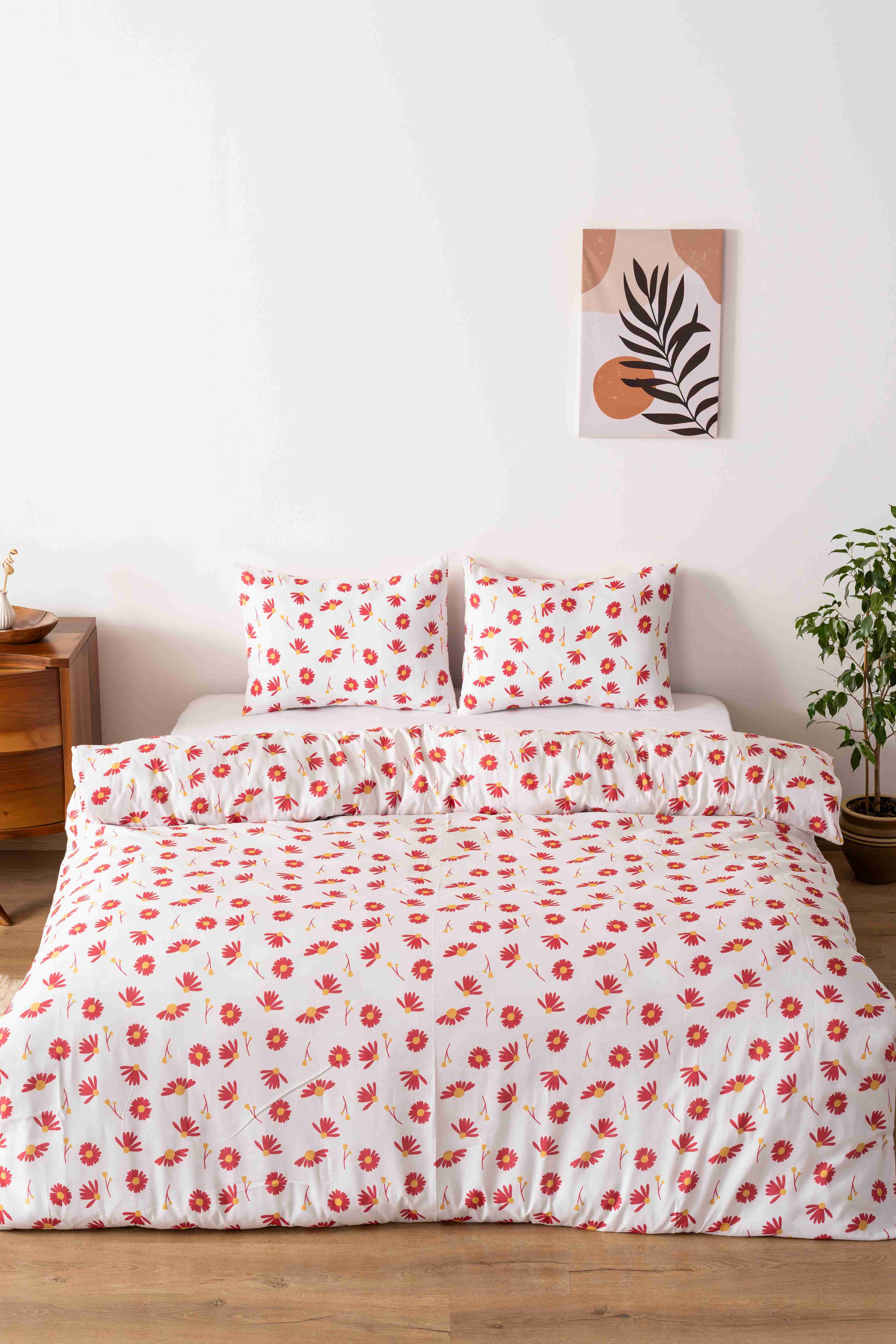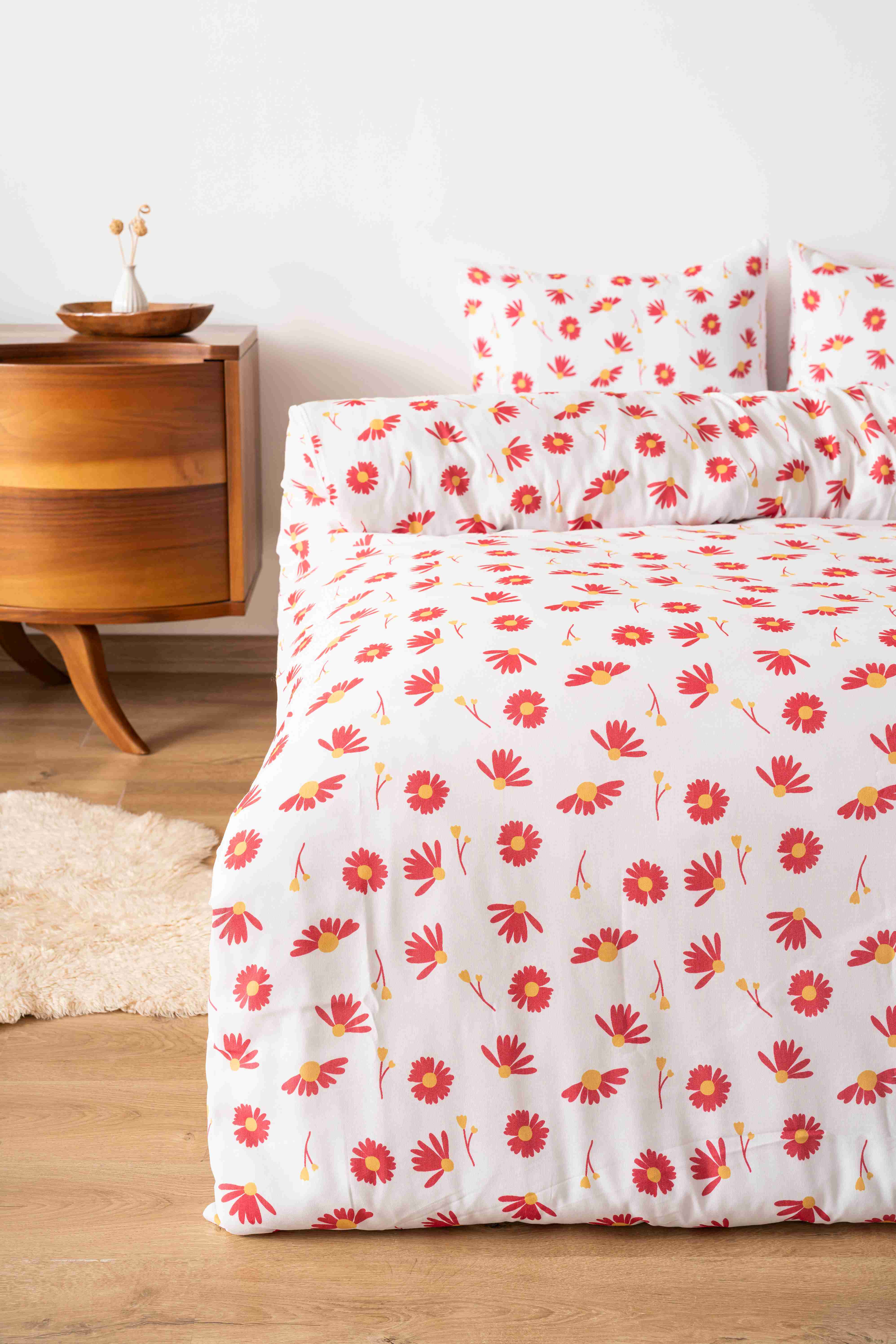 • Kırmızı Papatya Outlet Çift Kişilik Nevresim Takımı Pamuklu