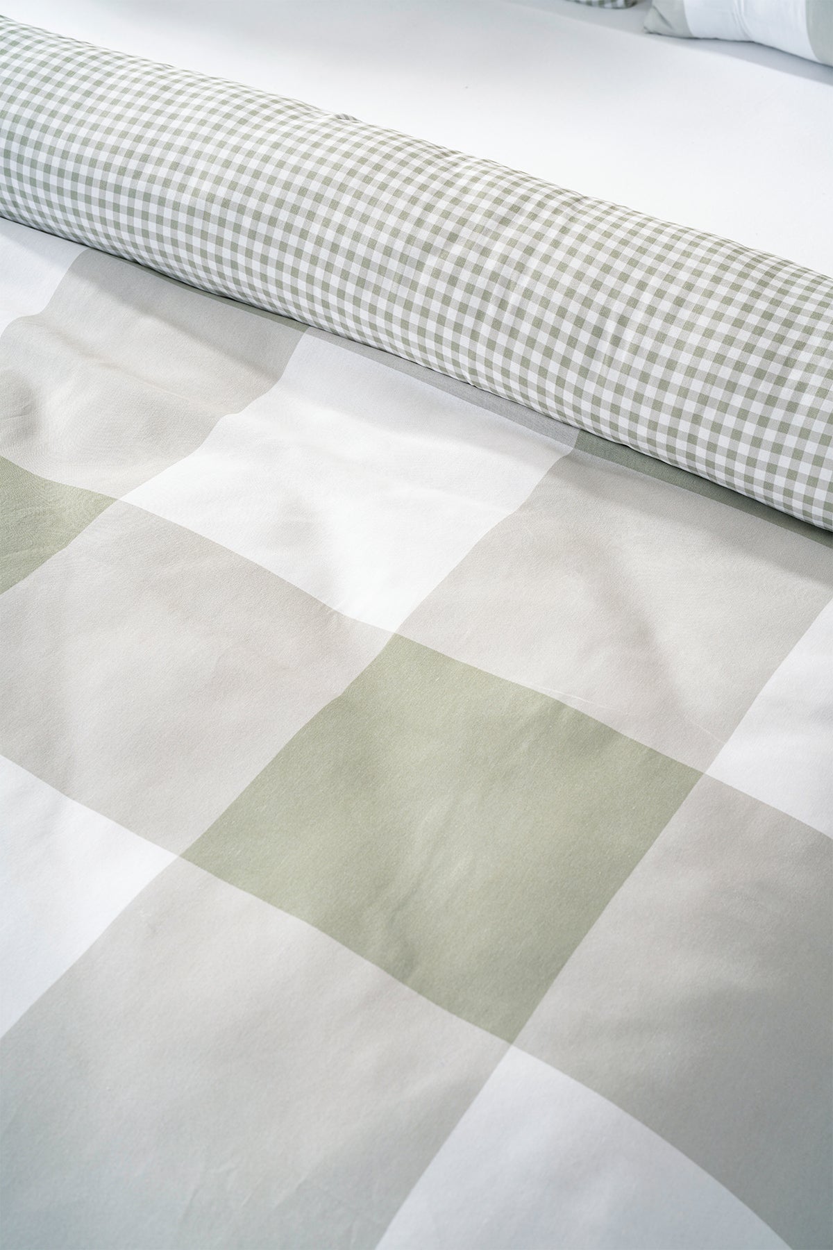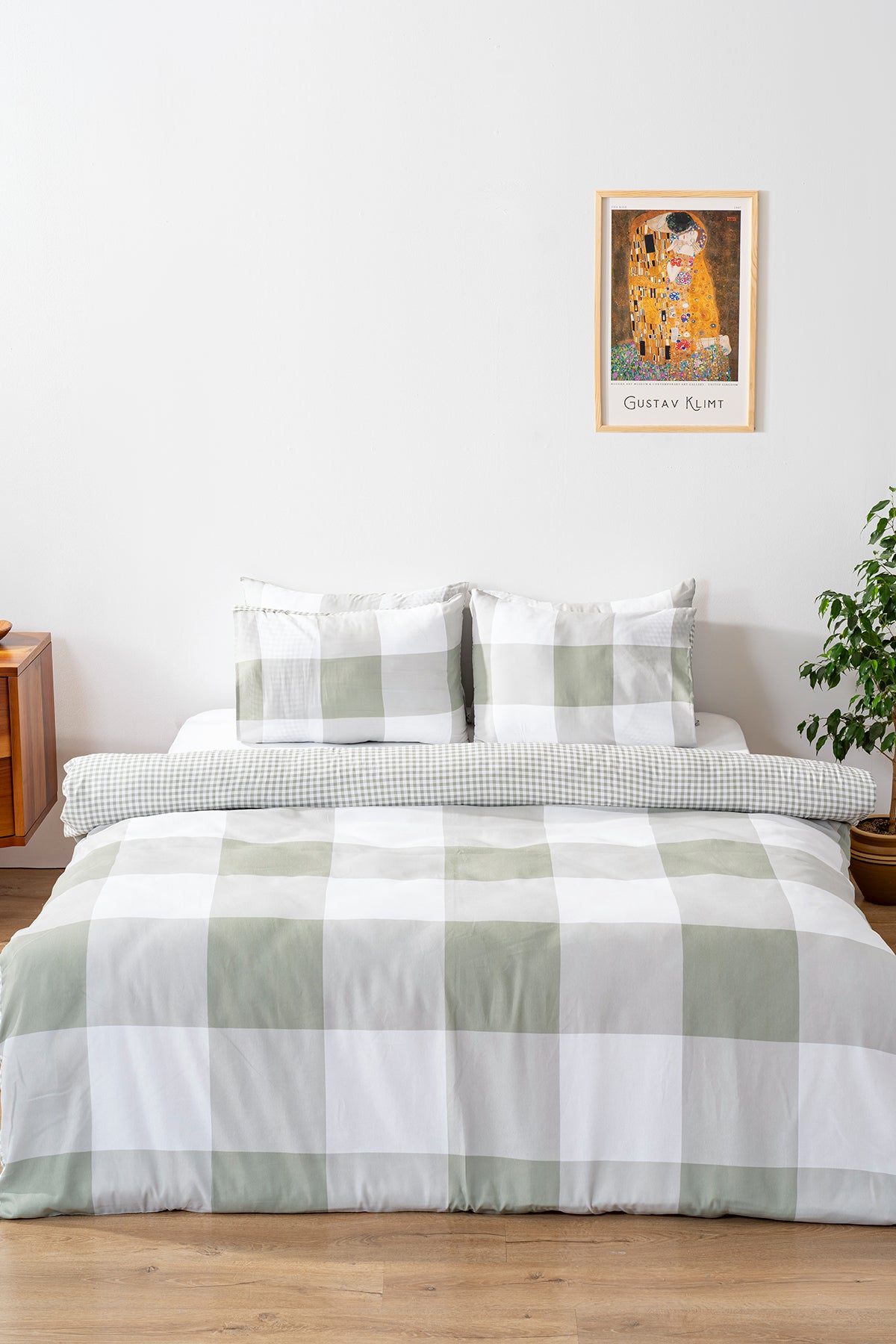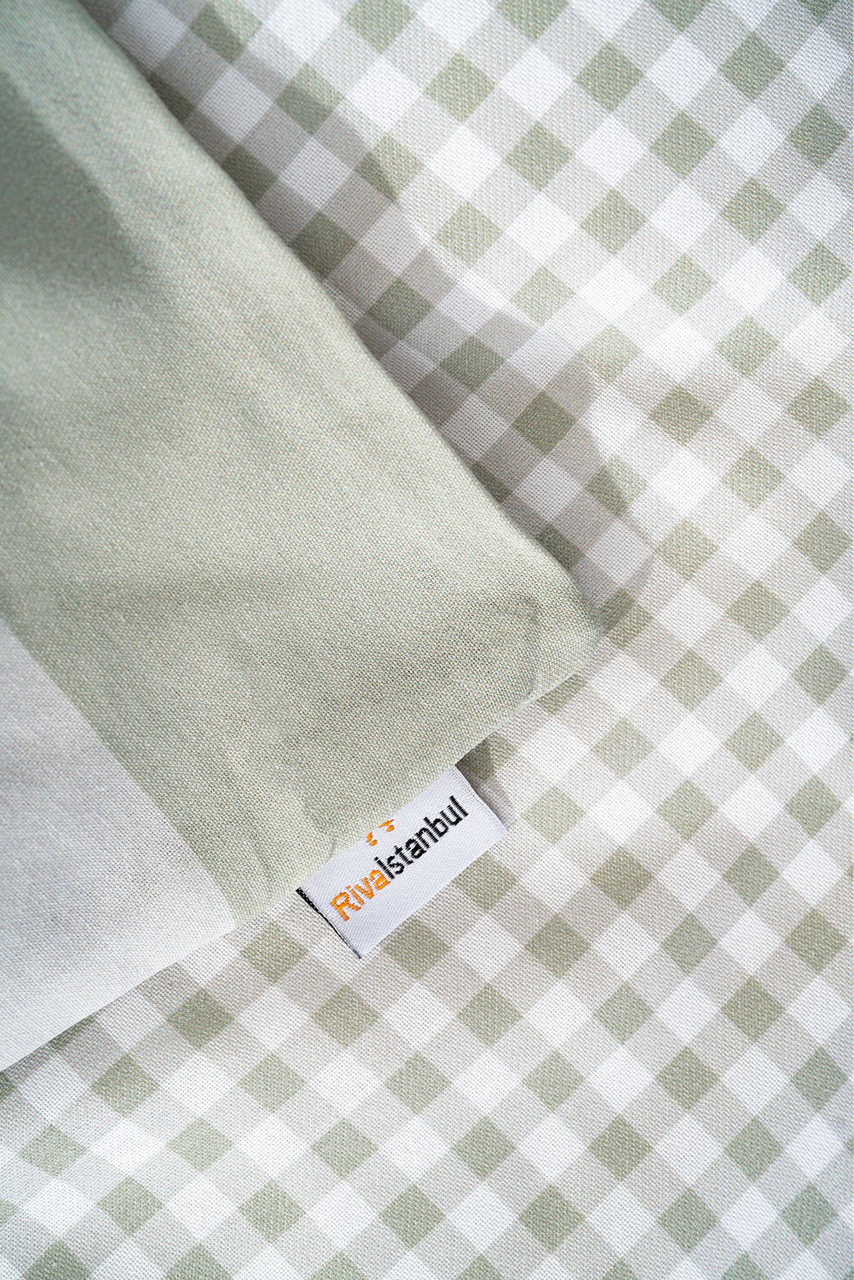 • Yeşil Kareli Outlet Çift Kişilik Nevresim Takımı Pamuklu