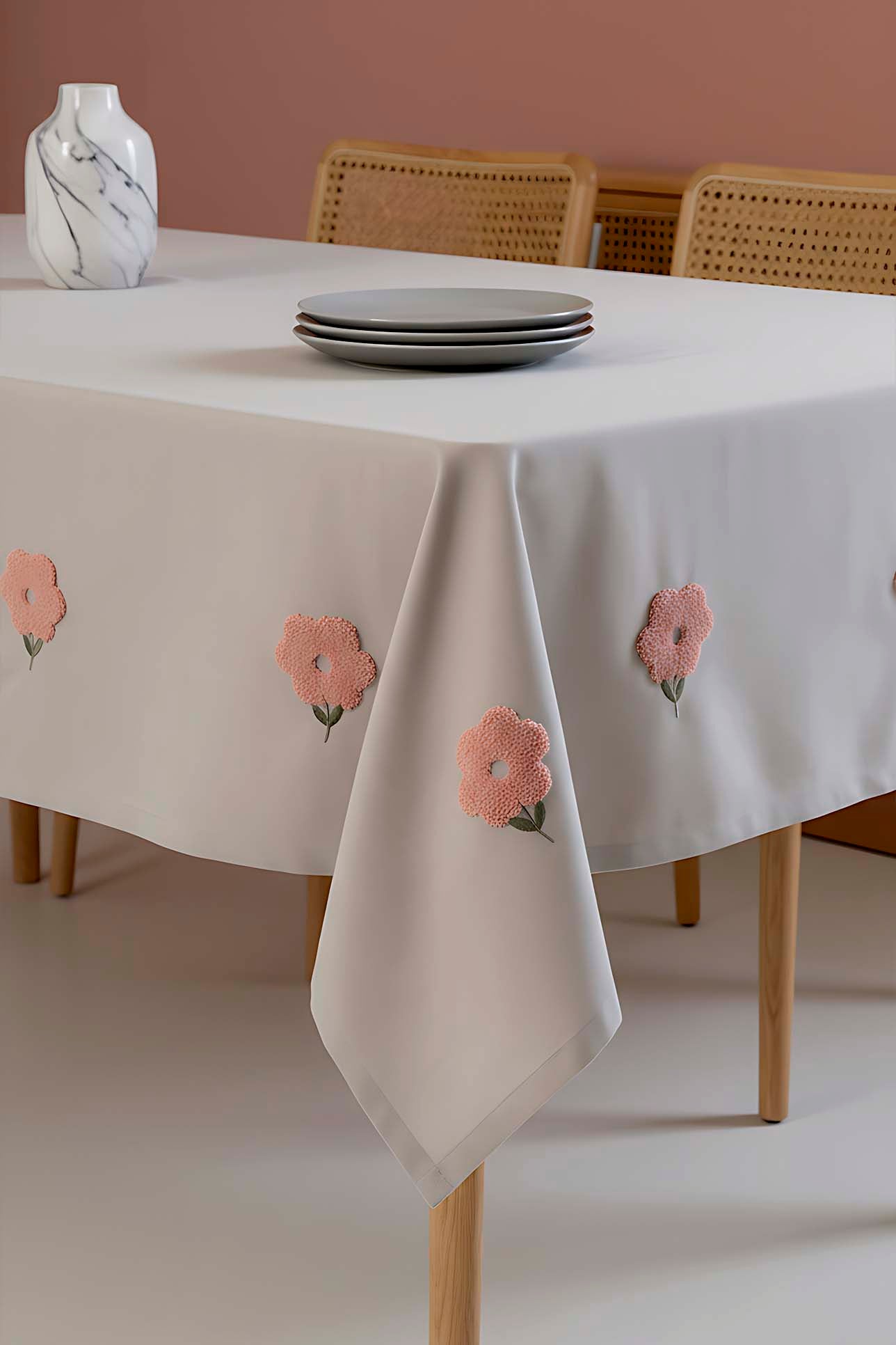 Florita Punch İşlemeli Leke Tutmaz Masa Örtüsü, sofranıza hem estetik hem de pratik bir dokunuş katmak için tasarlandı. Özenle işlenmiş zarif punch işlemeleriyle dikkat çeken bu masa örtüsü, leke tutmayan özel kumaşı sayesinde günlük kullanımdan özel davetlere kadar her anınıza eşlik eder.