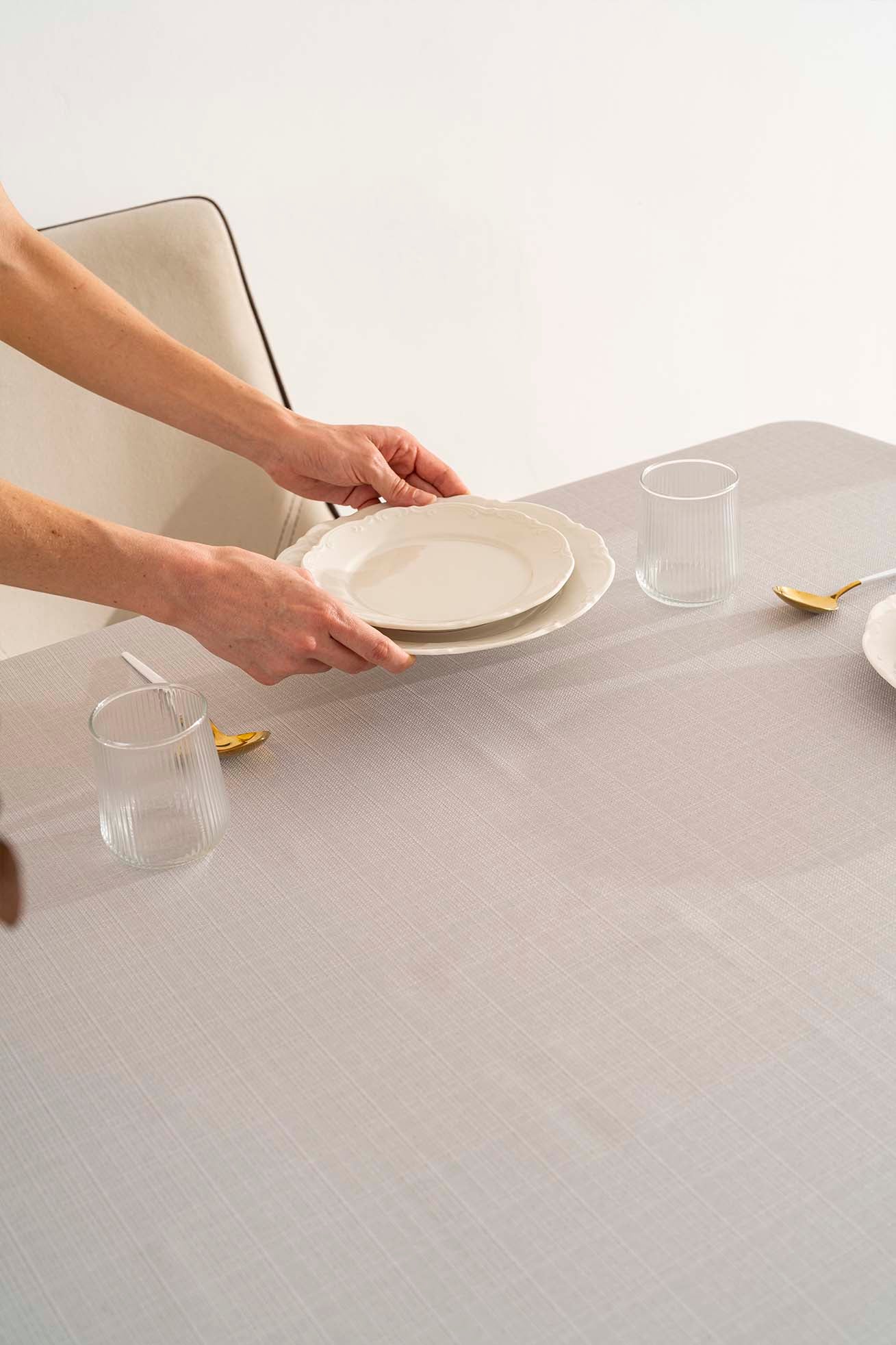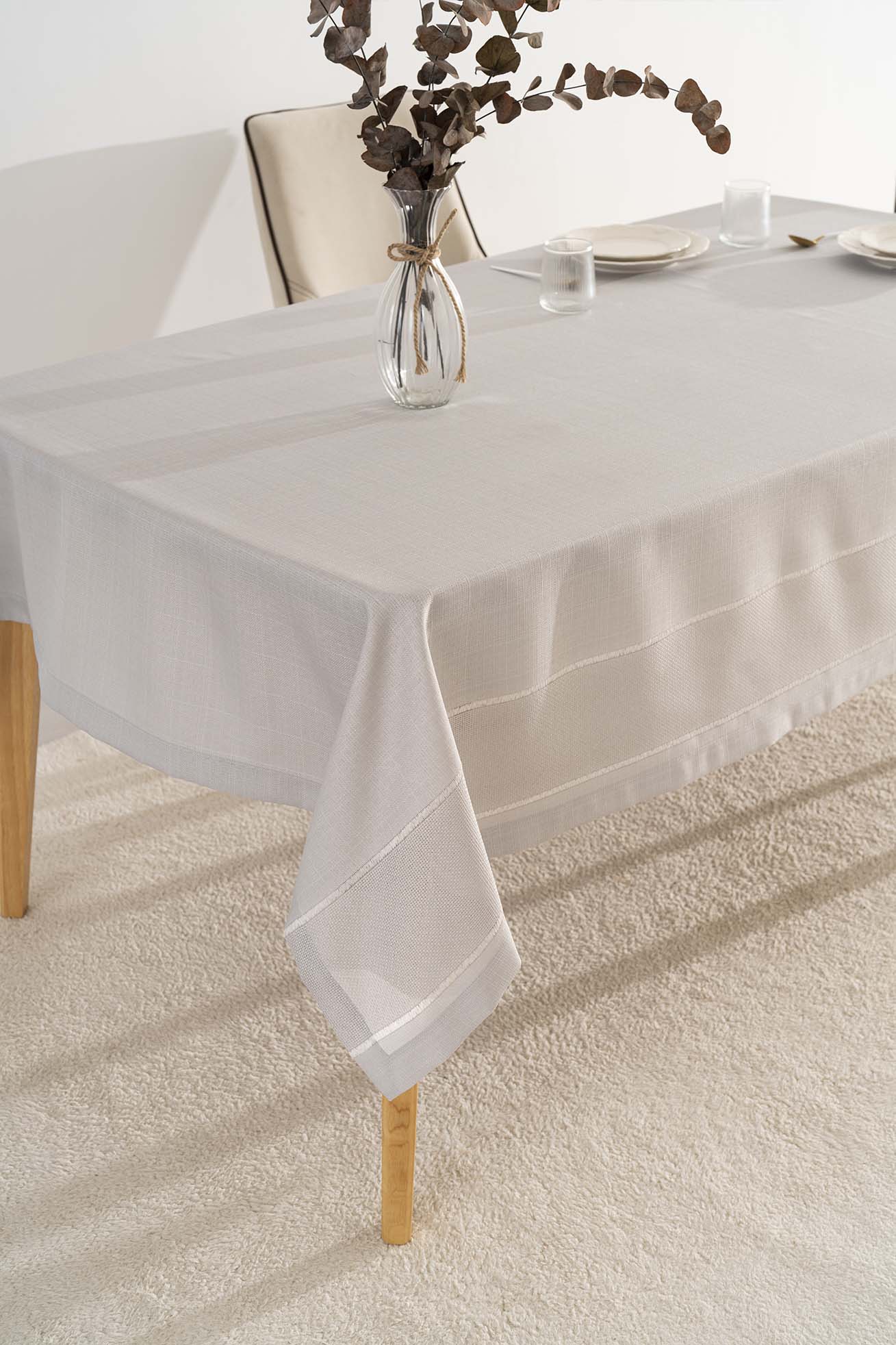 Nora Açık Gri Zarf Köşe Masa Örtüsü 150x220 cm