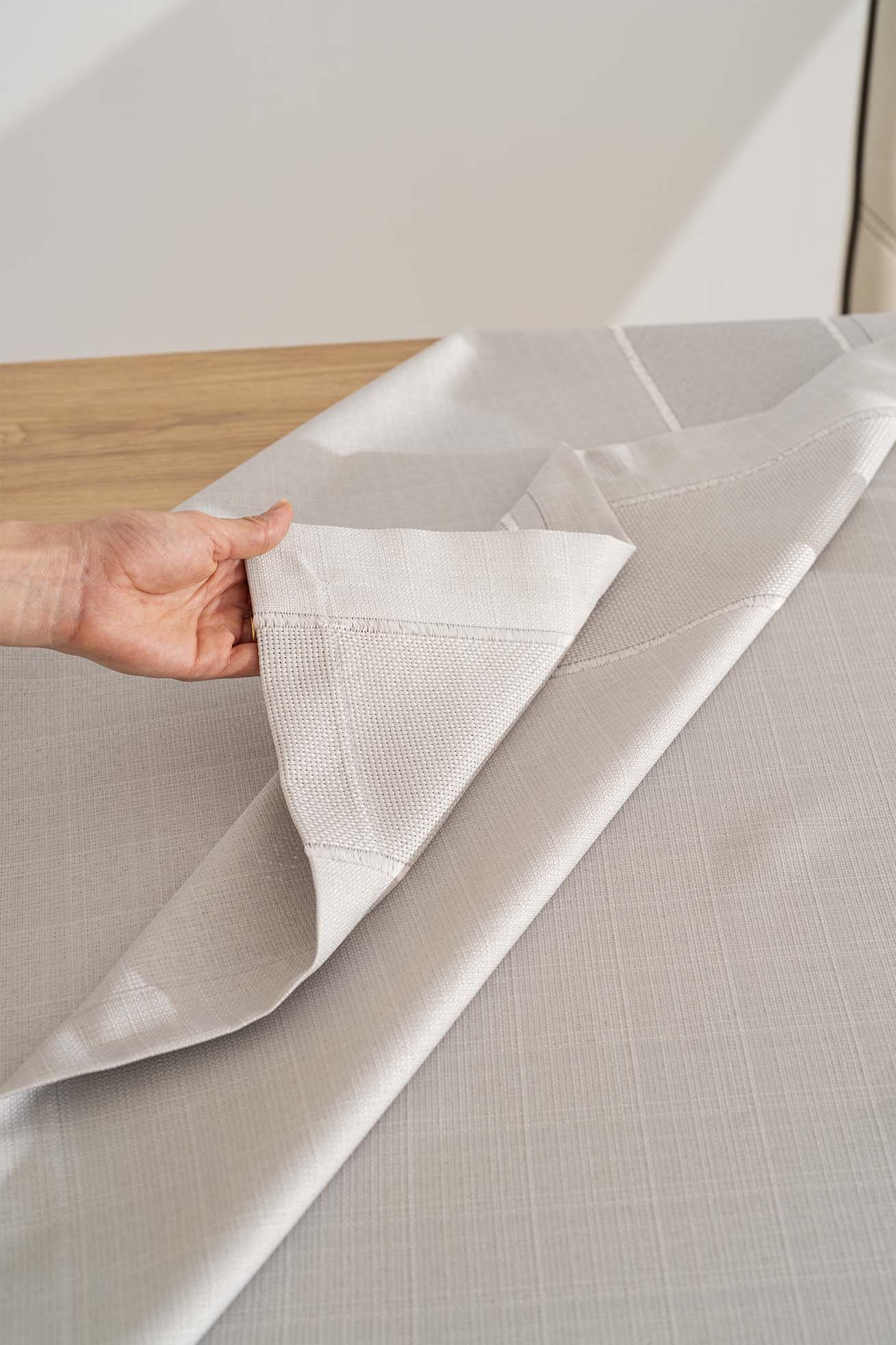• Nora Açık Gri Zarf Köşe Masa Örtüsü 150x220 cm