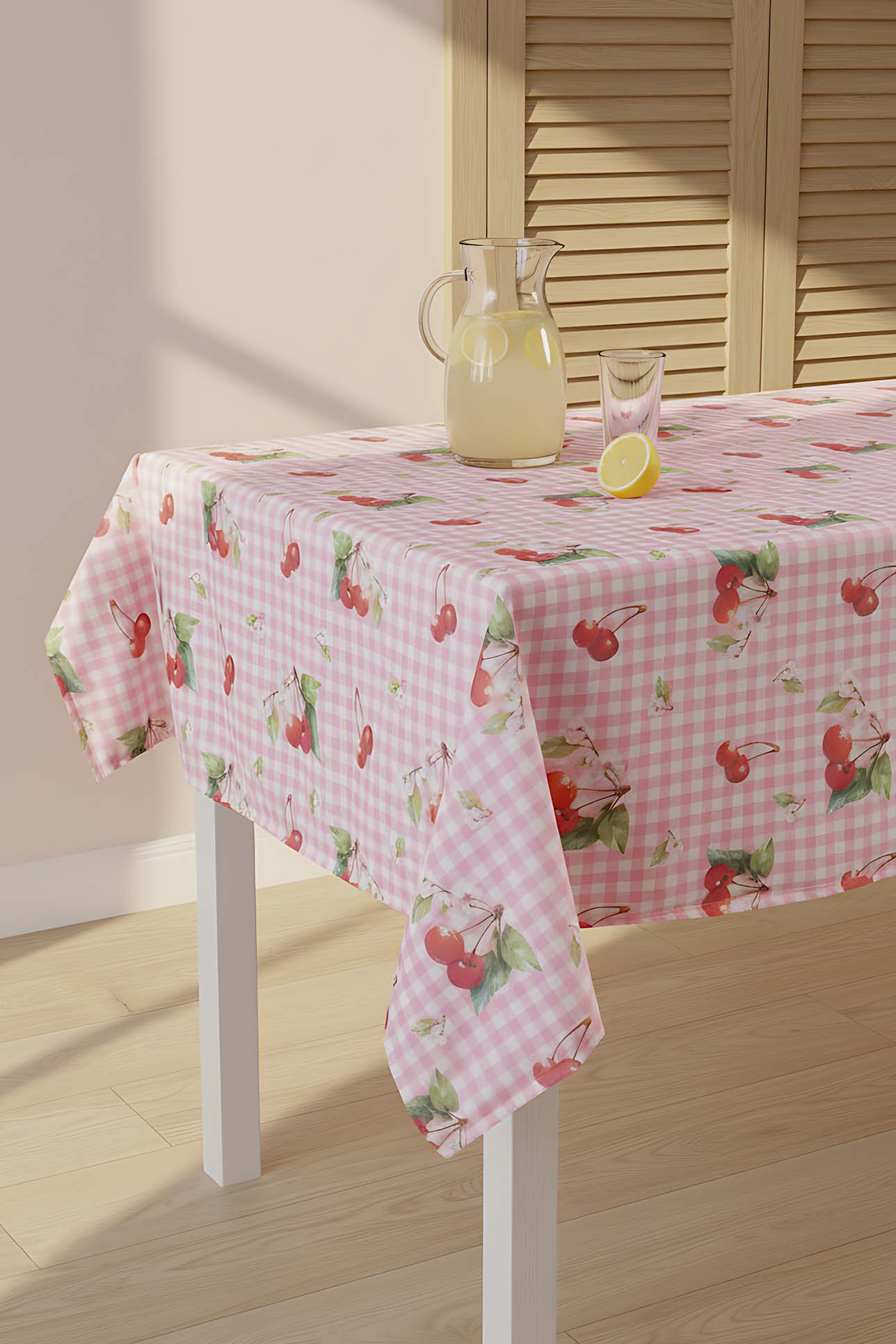 • Pötikare Pembe-Kiraz Desenli Masa Örtüsü, Sofra Bezi, Piknik Örtüsü