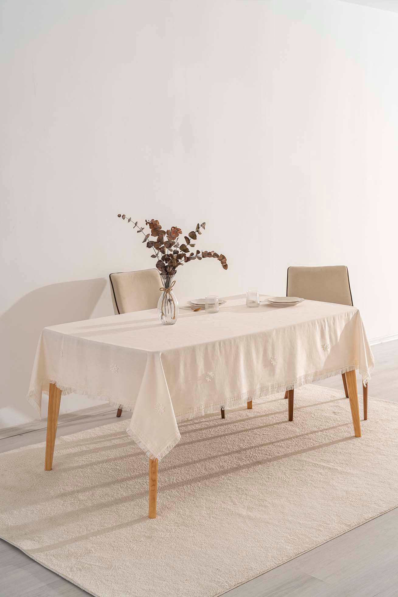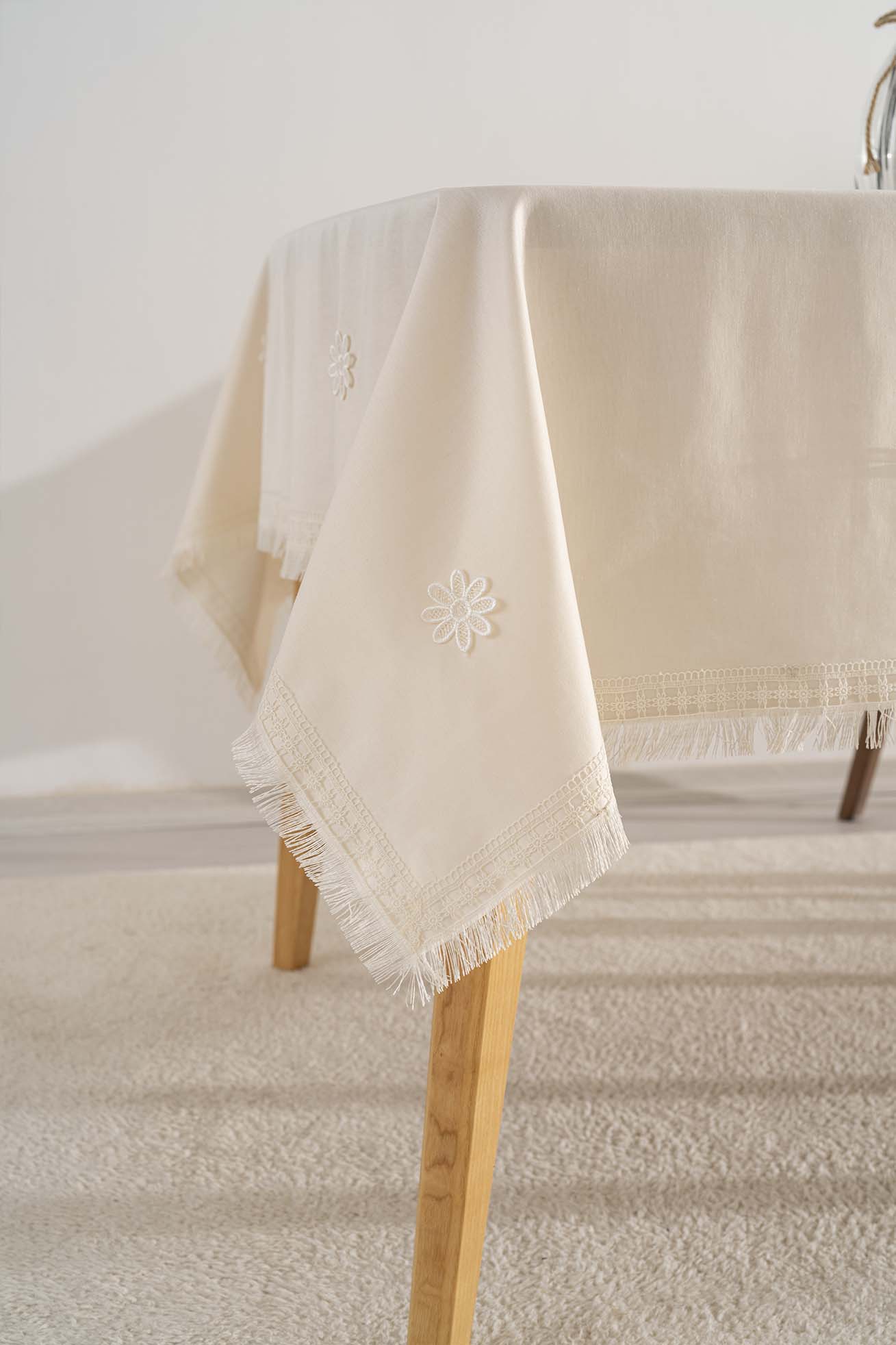 • Silvio Krem Güpür Çiçekli Masa Örtüsü 160x220 cm