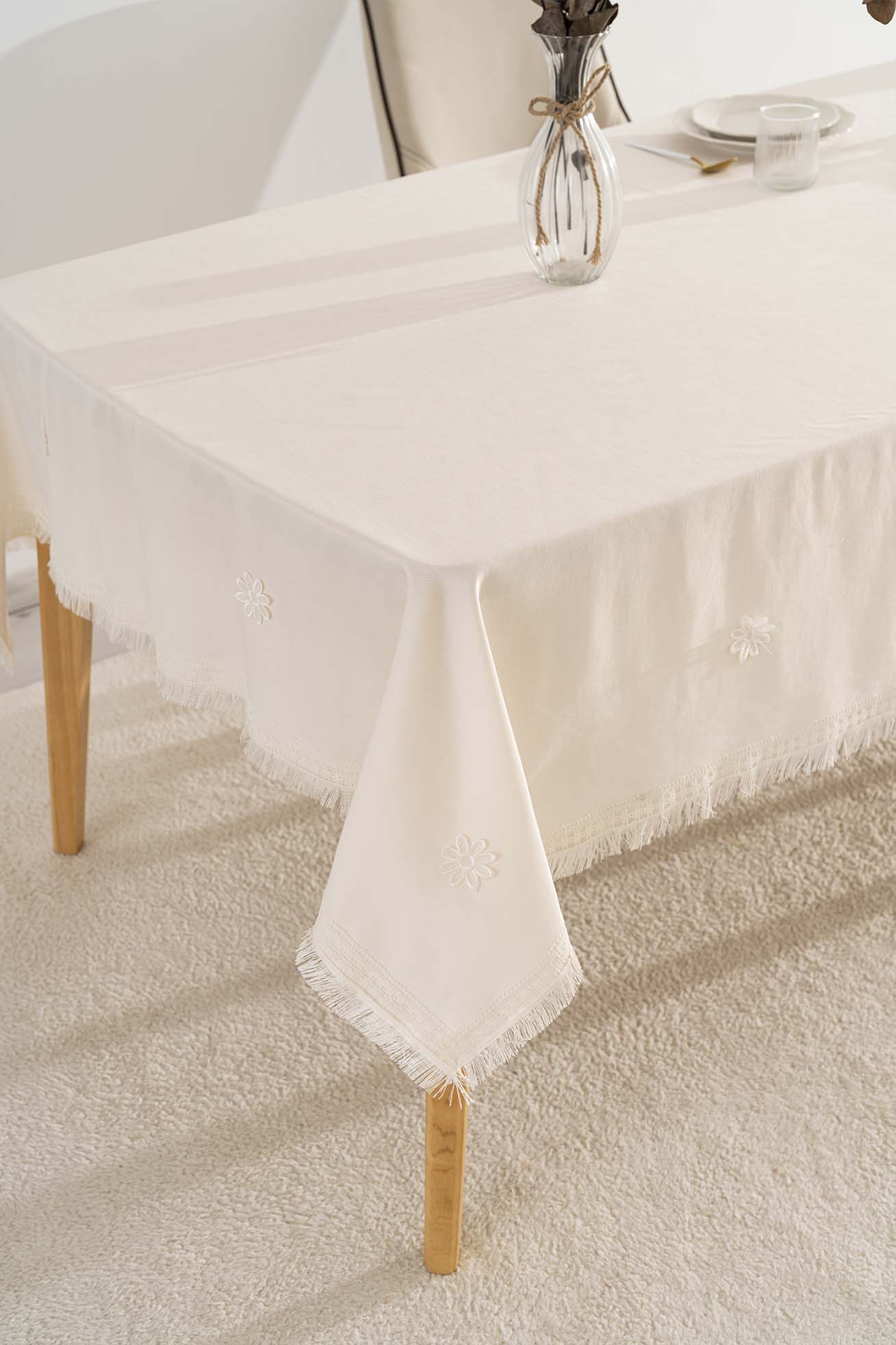 Silvio Krem Güpür Çiçekli Masa Örtüsü 160x220 cm