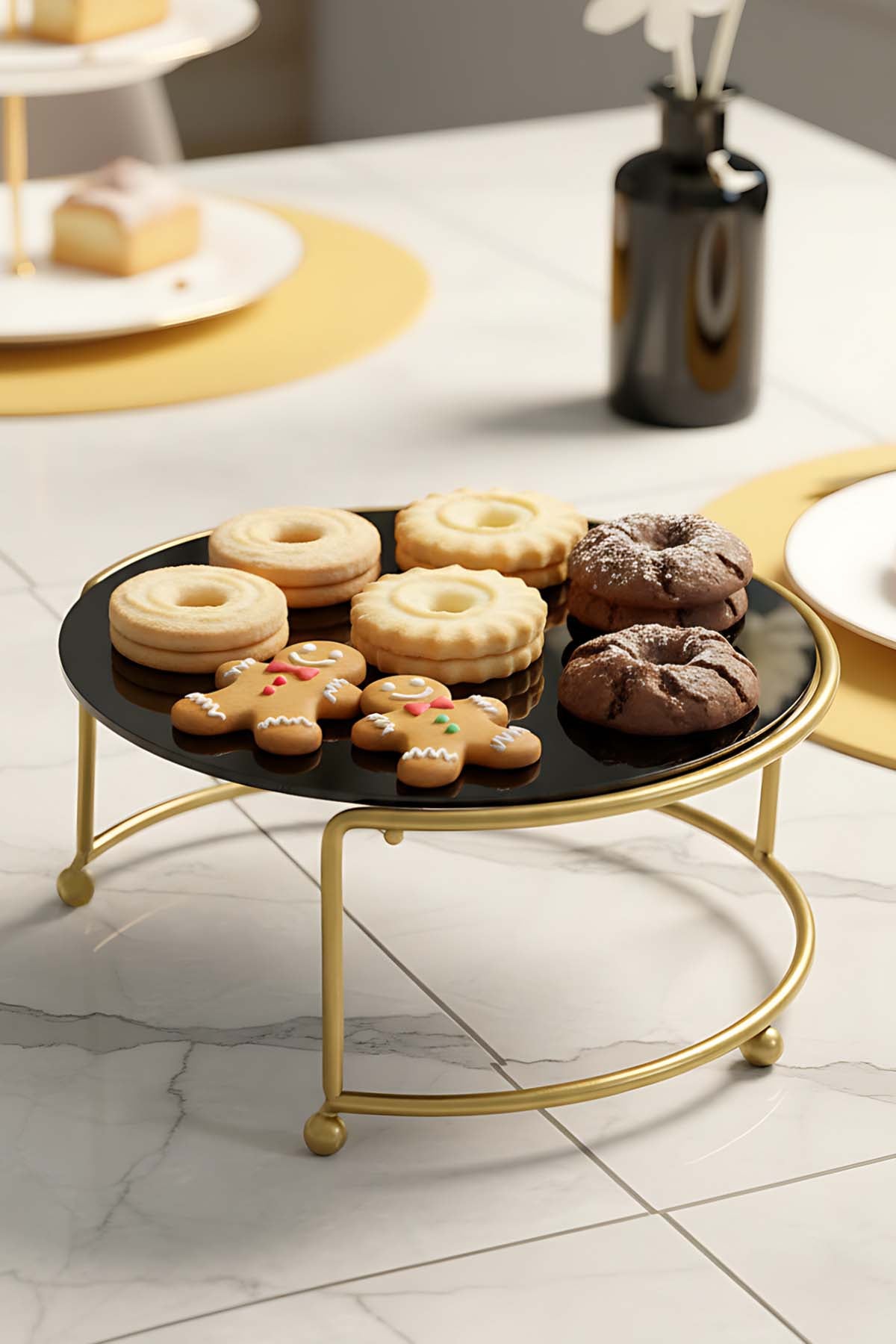 Şık tasarımıyla dekoratif kullanıma uygun Gold Küçük Boy Metal Sunumluk, siyah pleksi üst tablası ve altın renk metal gövdesiyle modern bir görünüm sunar. Tekli yapısıyla banyo, mutfak, salon ve özel davetlerde ikramlık, düzenleyici veya dekoratif stand olarak kullanılabilir. Paslanmaz yapısı sayesinde uzun ömürlüdür. Ürün boyutu 11,3 x 18,8 x 11,6 cm olup (boy * yükseklik * en) kompakt ve küçük boy tasarımıyla her alanda kullanıma uygundur.