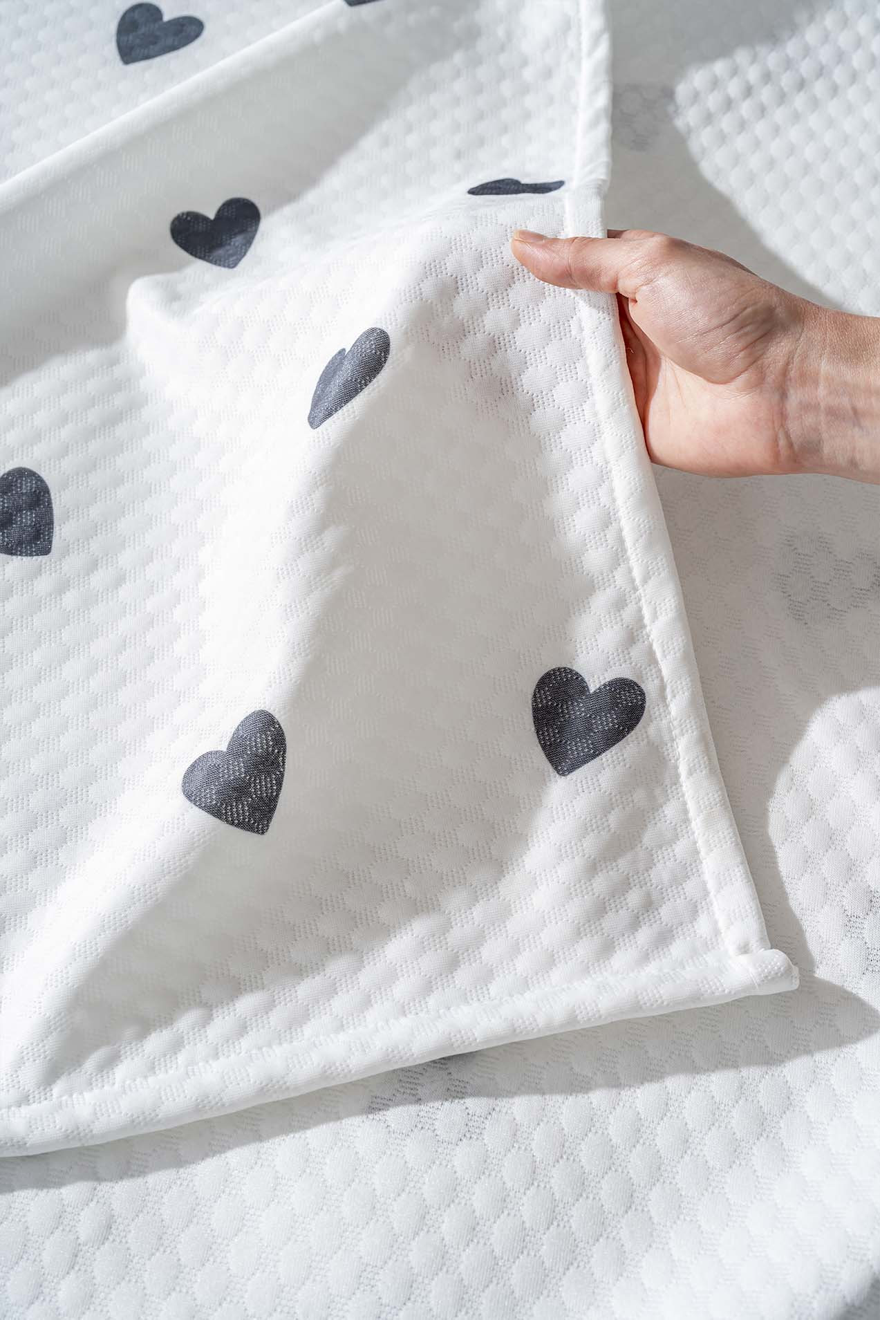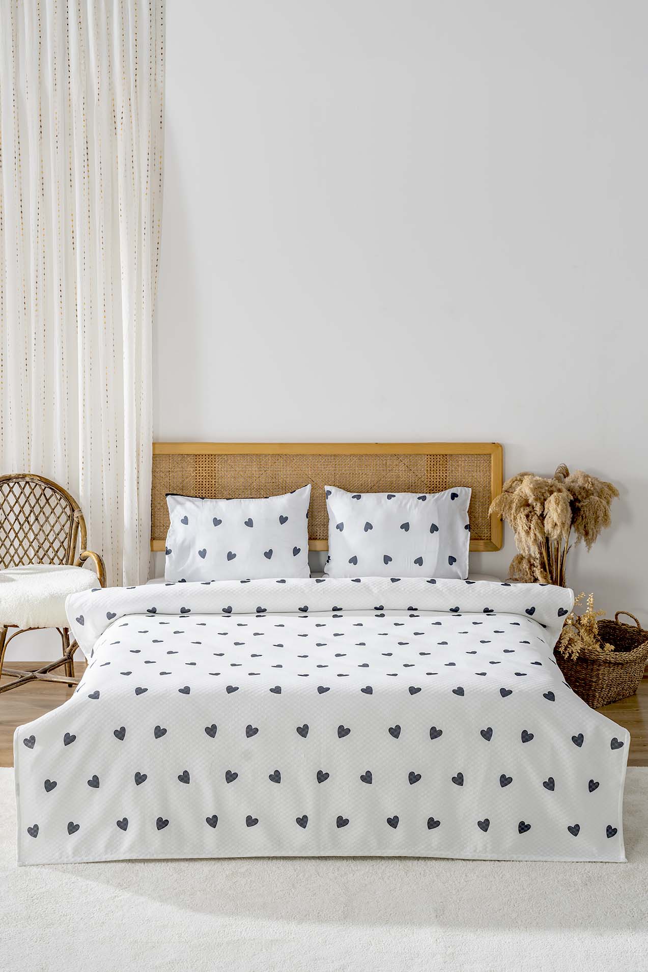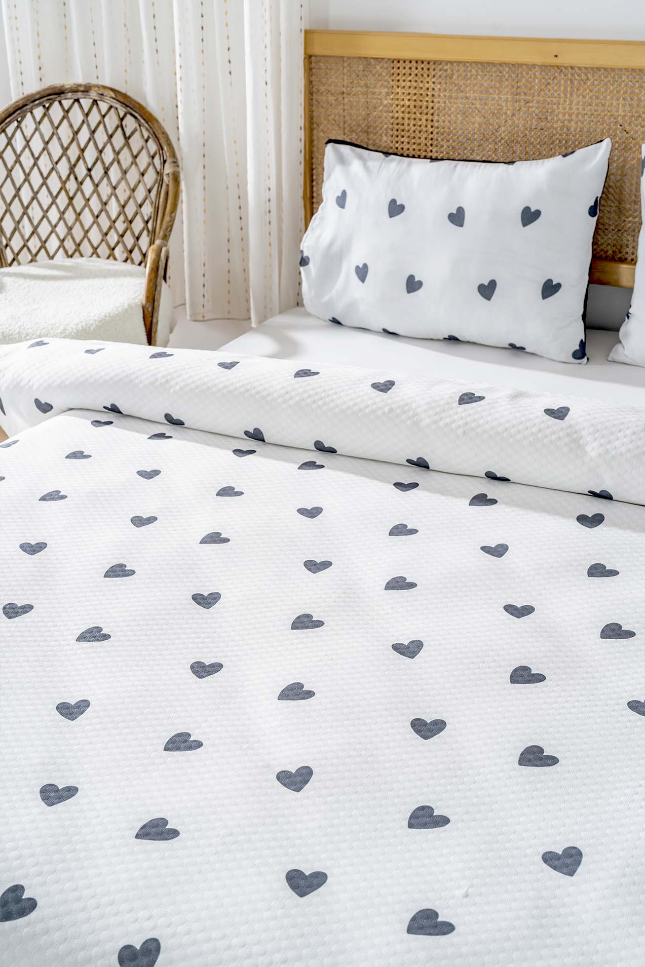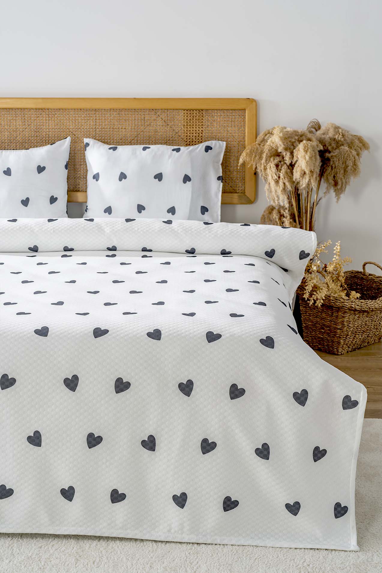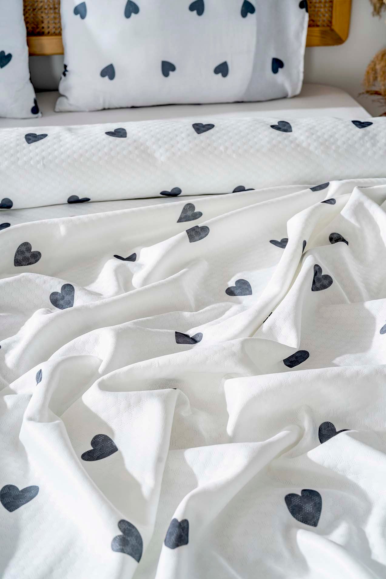 • Siyah Kalp Çift Kişilik Baskılı Pike 200 x 220 cm