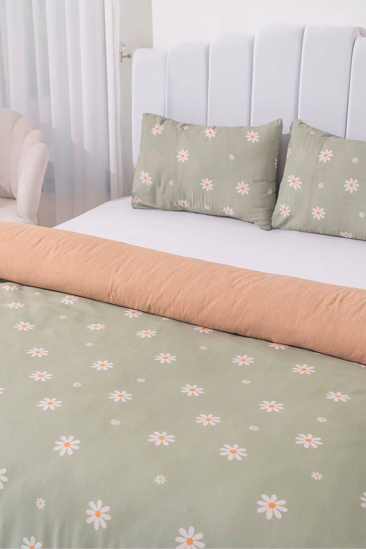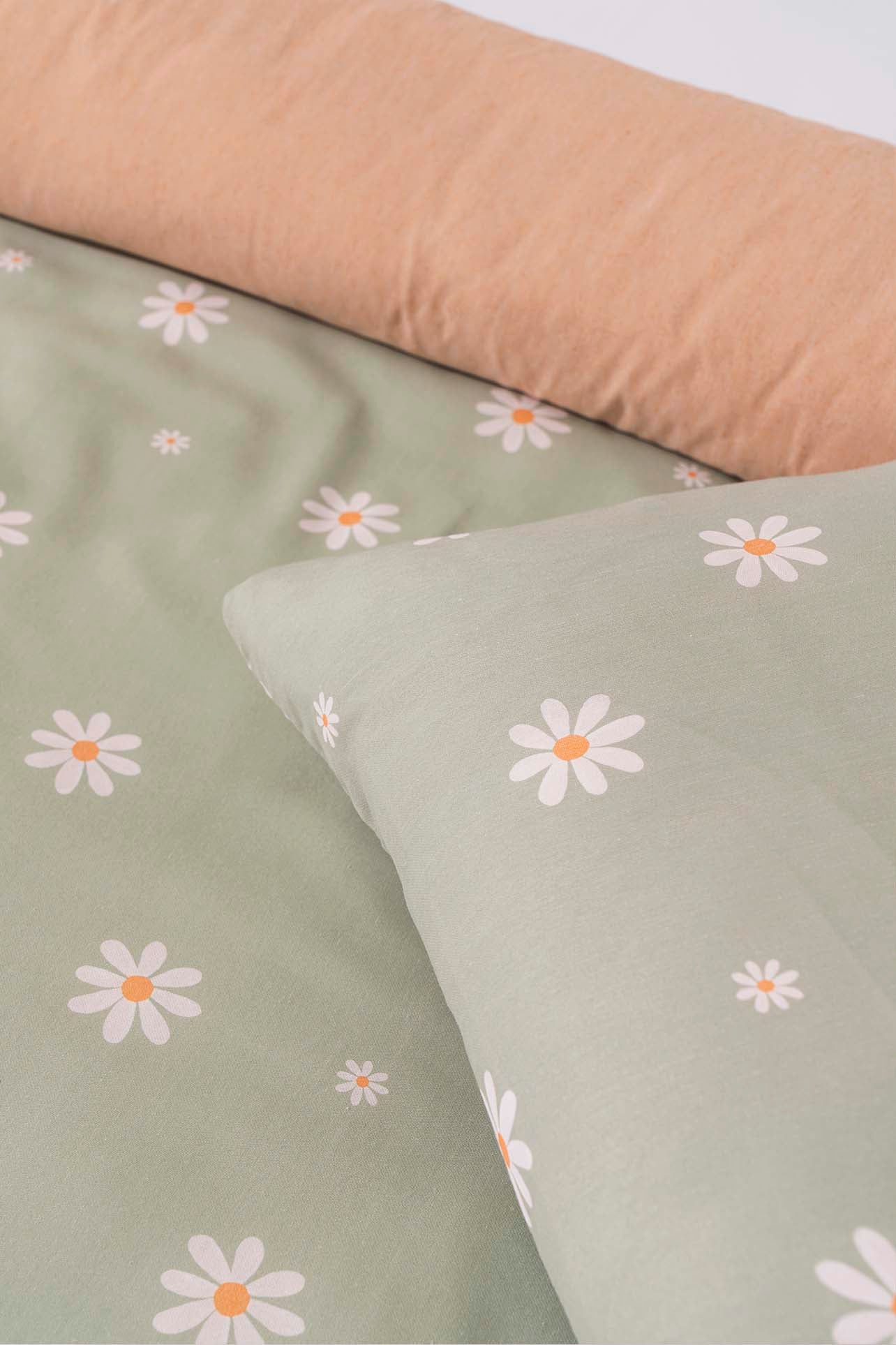 Minimal Yeşil Papatya Tek Kişilik Outlet Nevresim Takımı Pamuklu