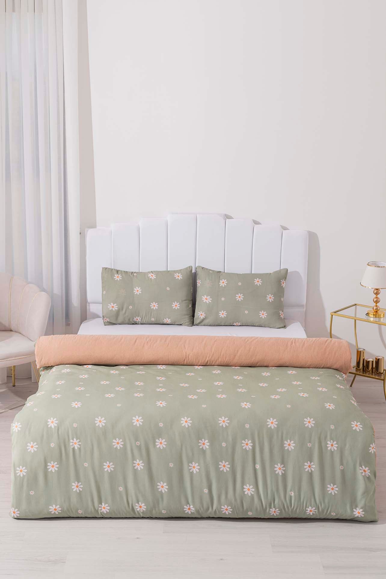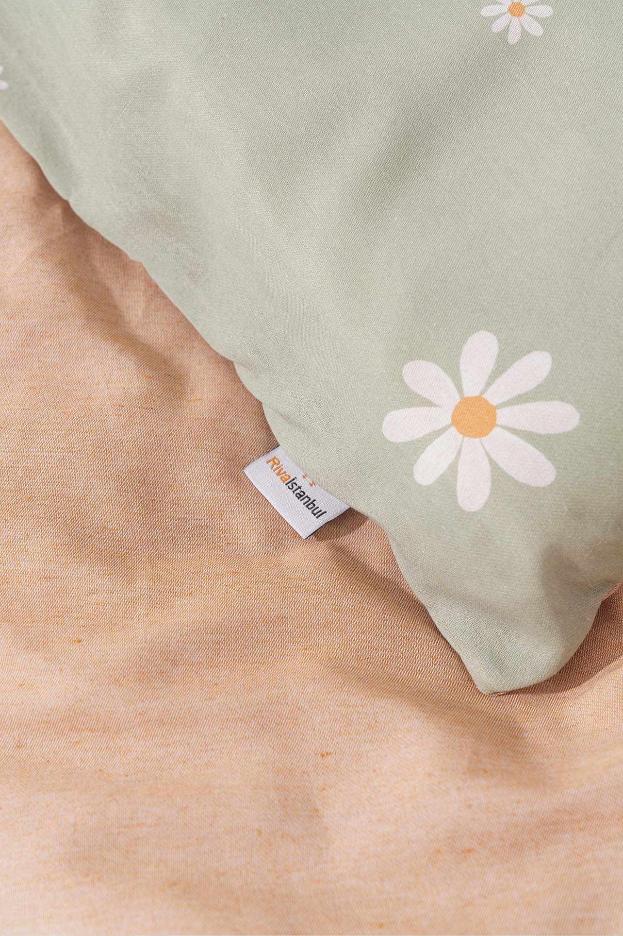 • Minimal Yeşil Papatya Tek Kişilik Outlet Nevresim Takımı Pamuklu