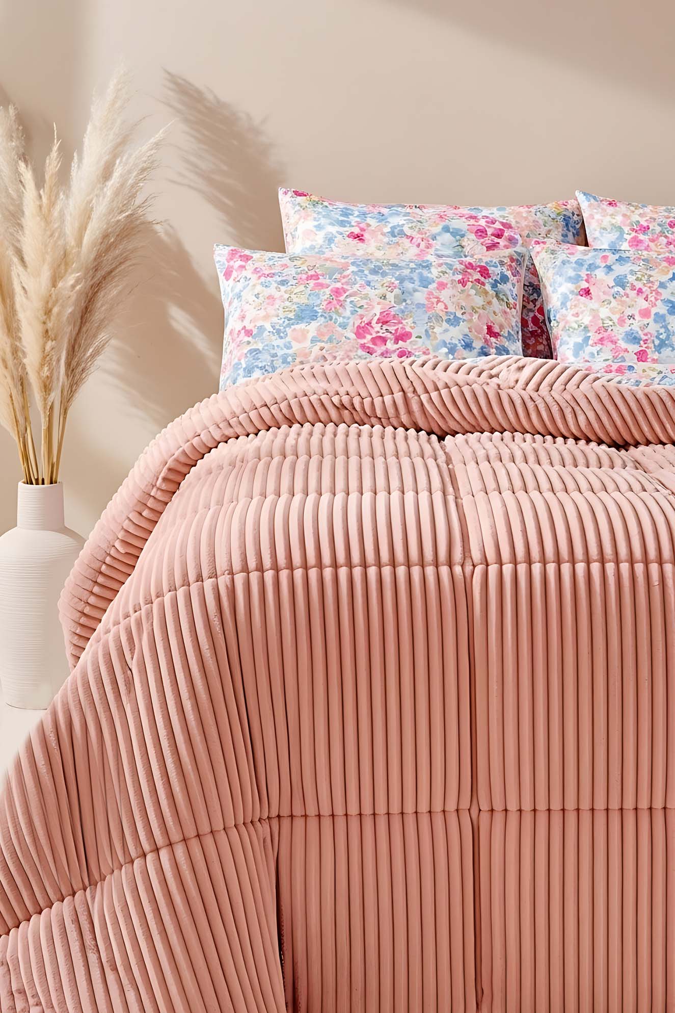 Pembe Bahar Çift Kişilik Nevresimli Pike Takımı - 7 Parça Çeyiz Seti