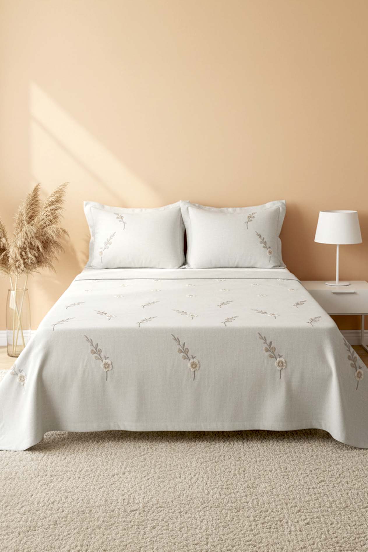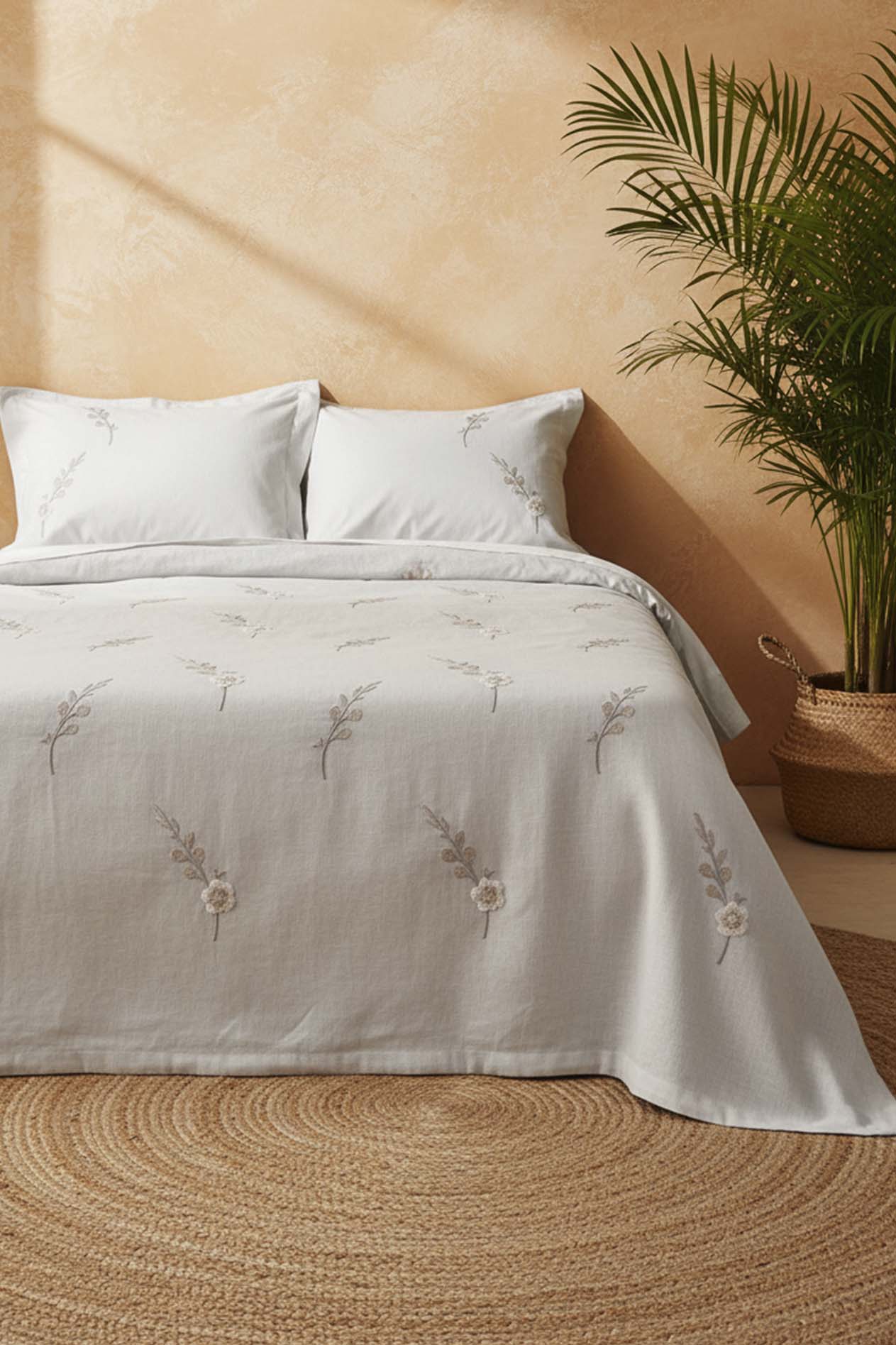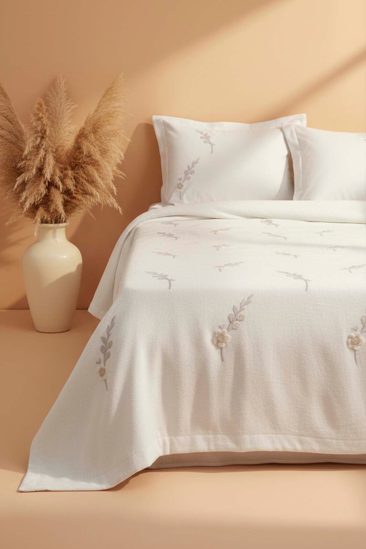 Doğal tonların sıcaklığıyla tasarlanan bu yatak örtüsü, yaşam alanınıza sade ve şık bir dokunuş kazandırır. %60 pamuk ve %30 polyester karışımlı kumaşı sayesinde hem yumuşak bir his sunar hem de dayanıklı yapısıyla uzun süreli kullanım sağlar. Nefes alabilen dokusu ile konforlu bir uyku deneyimi sunarken, hafif yapısı sayesinde dört mevsim kullanıma uygundur. Özenle işlenmiş kabartmalı desen detayları ürüne zarif bir hareket katarken, minimal ve modern dekorasyon stilleriyle kolayca uyum sağlar. Kolay temizlenebilir yapısı sayesinde pratik kullanım imkânı sunar.