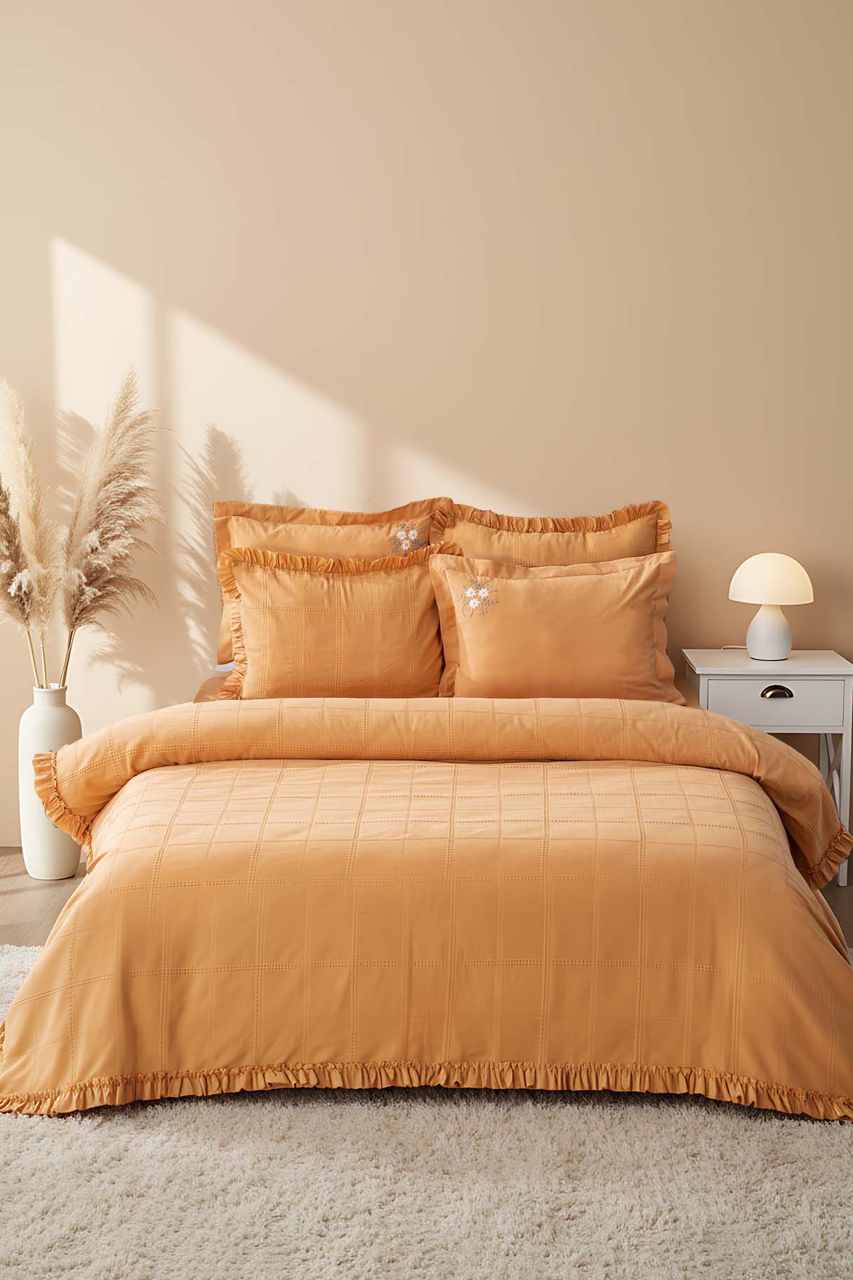 - Fiorella Turuncu Çift Kişilik Çarşaflı Yatak Örtüsü Takımı Uyku Seti 6 parçadan oluşmaktadır.
