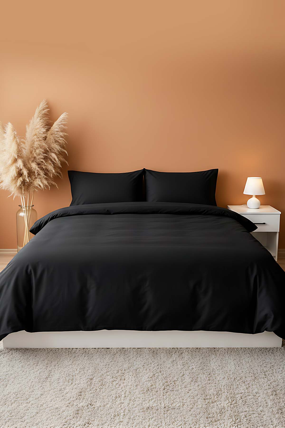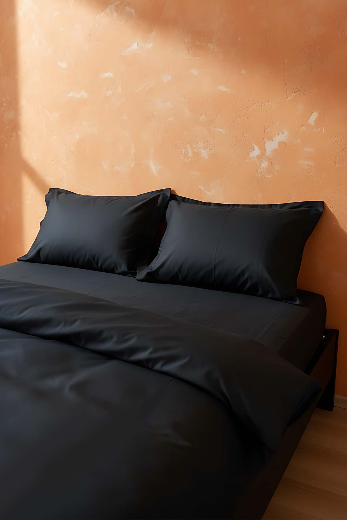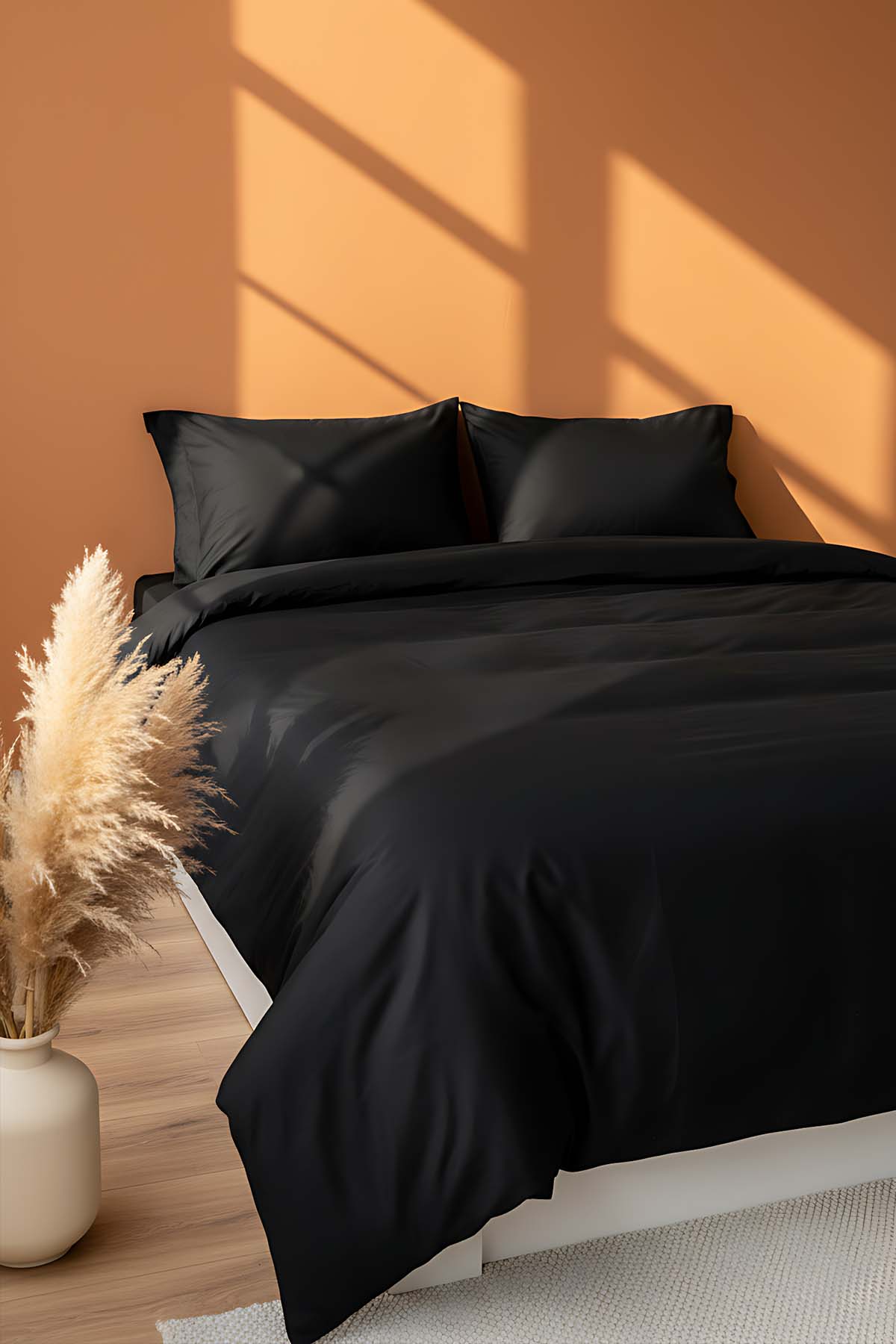 Siyahın güçlü ve modern duruşunu minimalist bir tasarımla birleştiren bu takım, yatak odasına lüks bir otel estetiği katar. Dayanıklı dokuması sayesinde uzun ömürlü kullanım sunar, cildinizle temasında ekstra yumuşaklık hissi verir. Şıklık, kalite ve konforu bir arada arayanlar için mükemmel bir seçimdir.