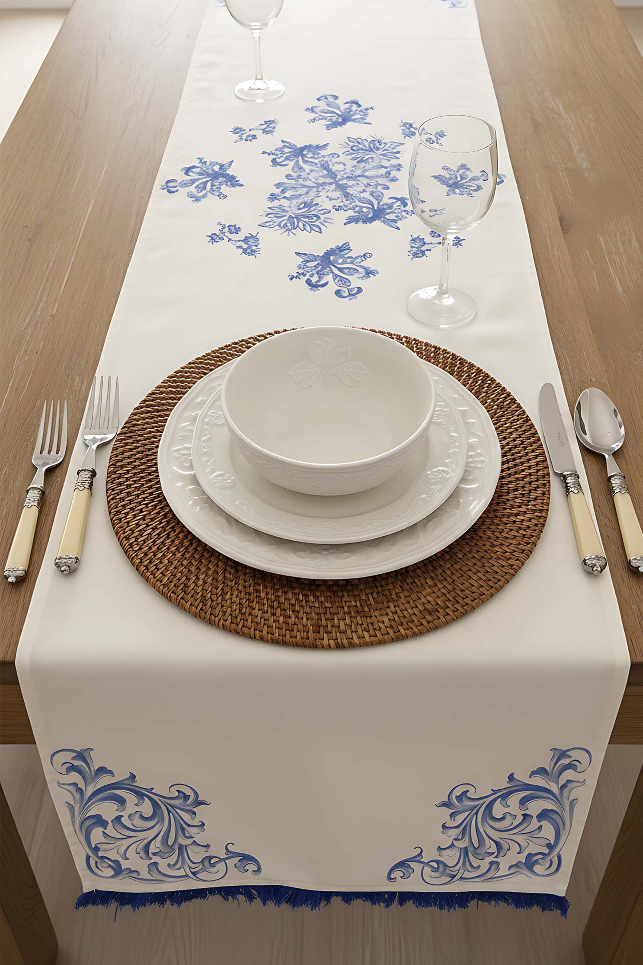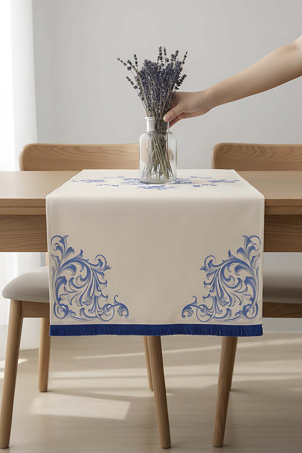 Elysian Blue Premium Serisi duck keten kaymaz runner, 45x140 cm ölçüsüyle yemek masalarına zarif ve modern bir görünüm kazandırır. Dayanıklı keten dokusu sayesinde uzun süre formunu korur, kaymaz tabanı ise kullanım sırasında sabit durarak pratiklik sağlar. Sofralarda şık bir atmosfer oluşturmak isteyenler için ideal bir tamamlayıcıdır.