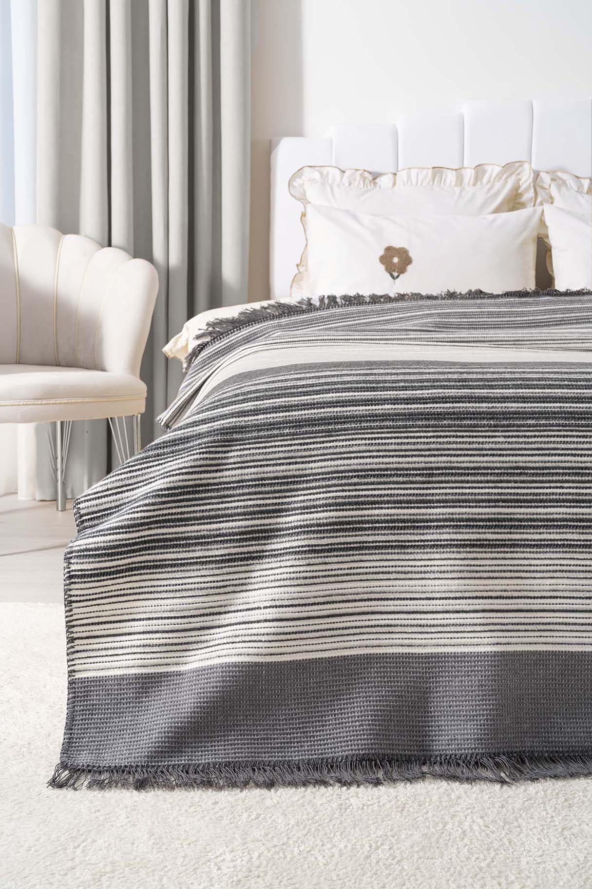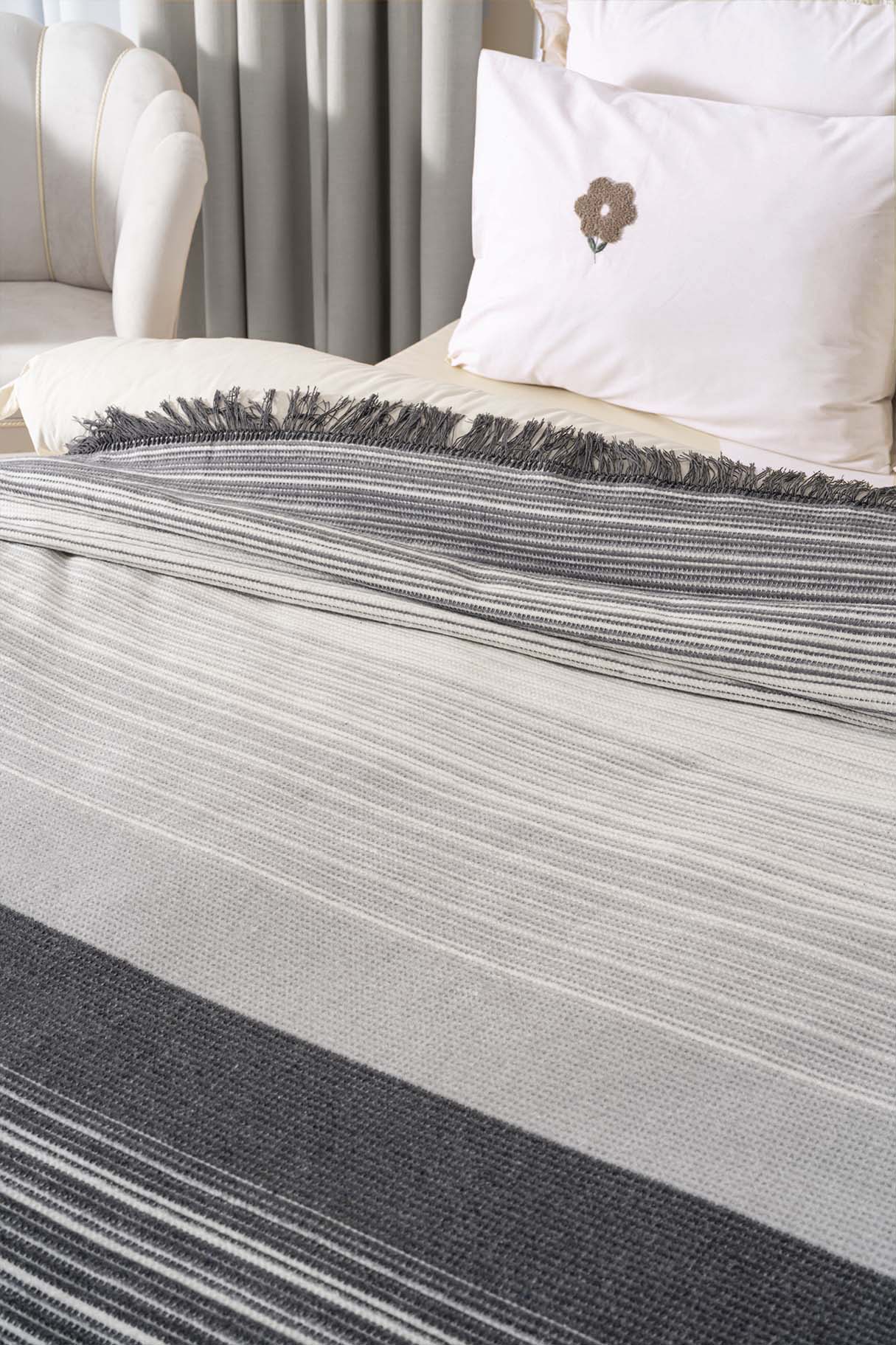 Veloura Çift Kişilik Püsküllü Battaniye, yumuşak dokusuyla hem şık hem de konforlu bir kullanım sunar. Ekstra yumuşak dokusu sayesinde serin havalarda vücut ısısını koruyarak sıcak ve rahat bir his uyandırır.