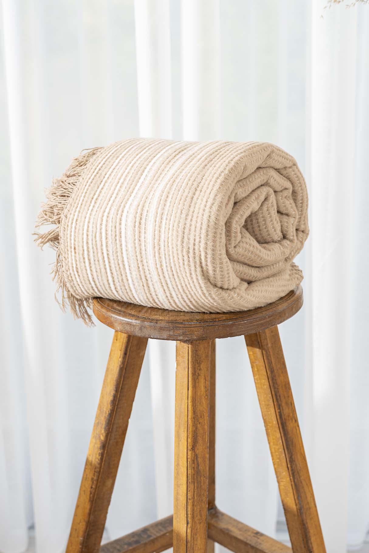 Veloura Bej Tek Kişilik Battaniye - Tv Battaniyesi 130x170 cm